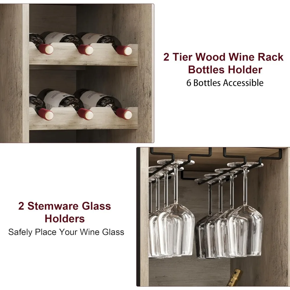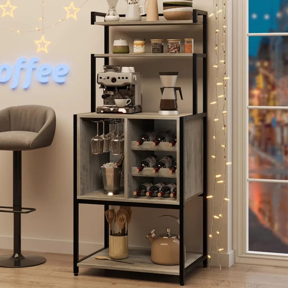 - Multipurpose Kitchen Wine Cabinet: This rustic wine cabinet combines a coffee bar cabinet, bakers rack, and bar cabinet to give you plenty of storage space. This coffee bar cabinet with storage is designed to organize your kitchen groceries neatly. You can use it as a coffee bar or liquor bar cabinet, kitchen sideboard buffet cabinet, and bakers rack cabinet, making the most of your living space. The bar wine cabinet is a perfect addition to your kitchen living dining room.