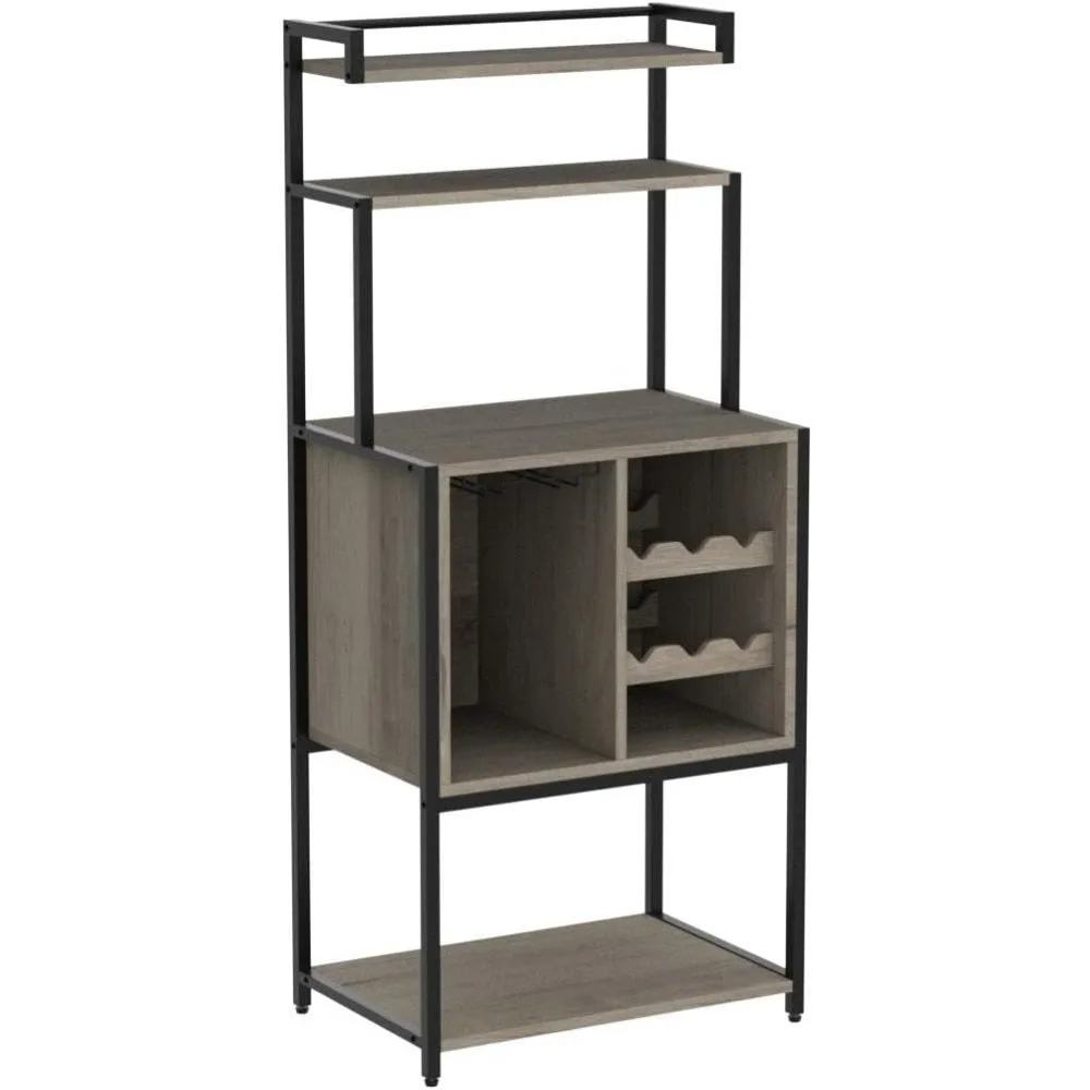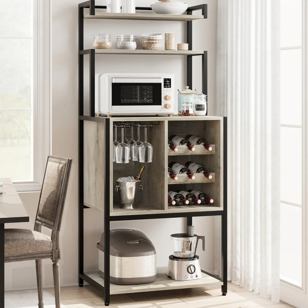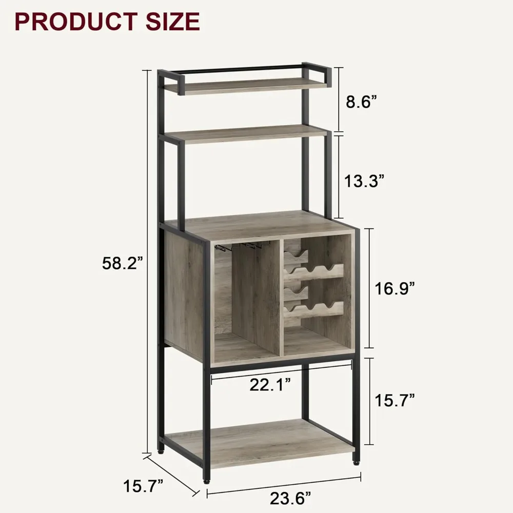 Wine Bar Rack Cabinet, Freestanding Wine Cabinet with Glass Rack Wine Bottle Holders, Industrial Bakers Rack,