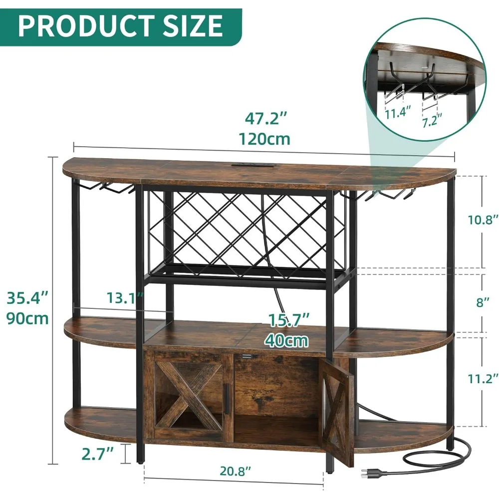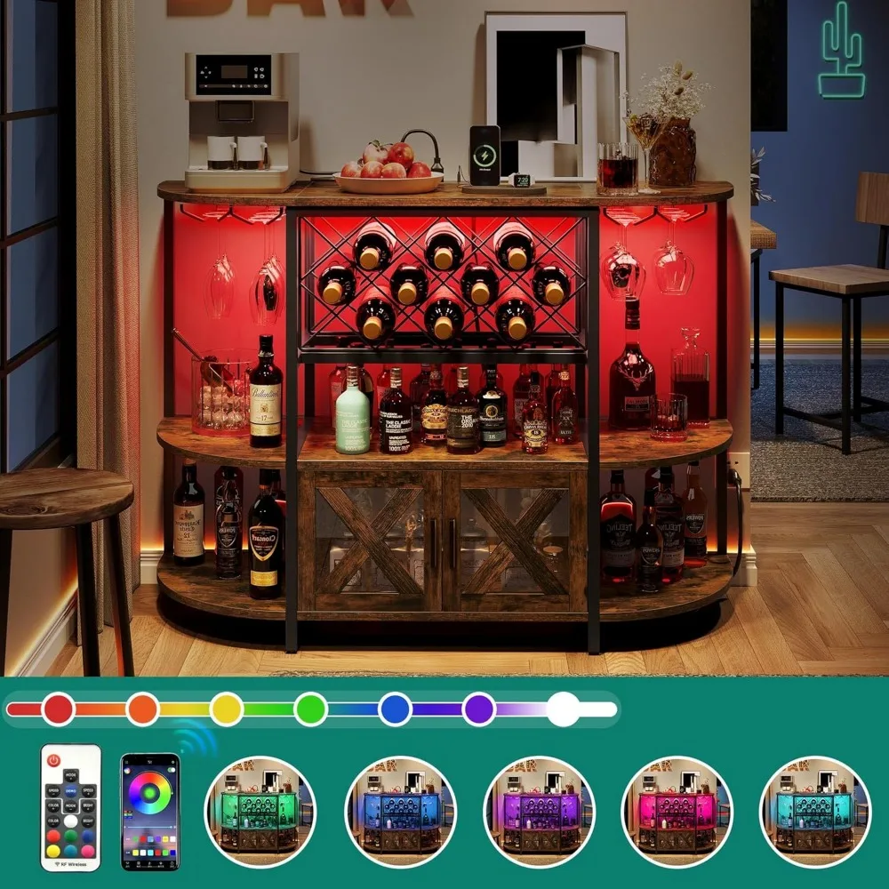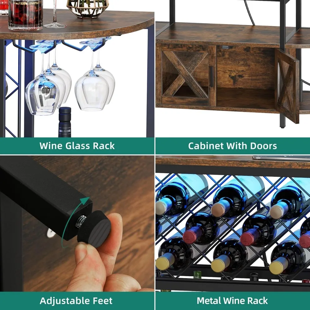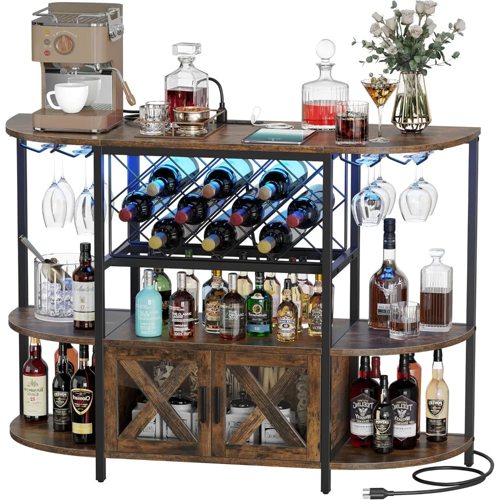 Wine Cabinet.Bar Table Cabinet with Power Outlet, LED Home Mini Coffee Bar Cabinet for Liquor, Metal Wine Cabinet Bar Stand