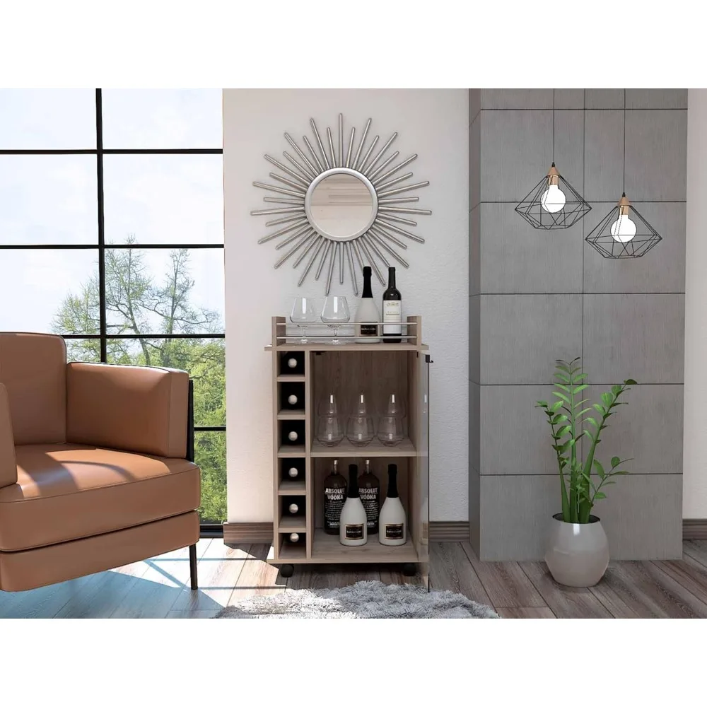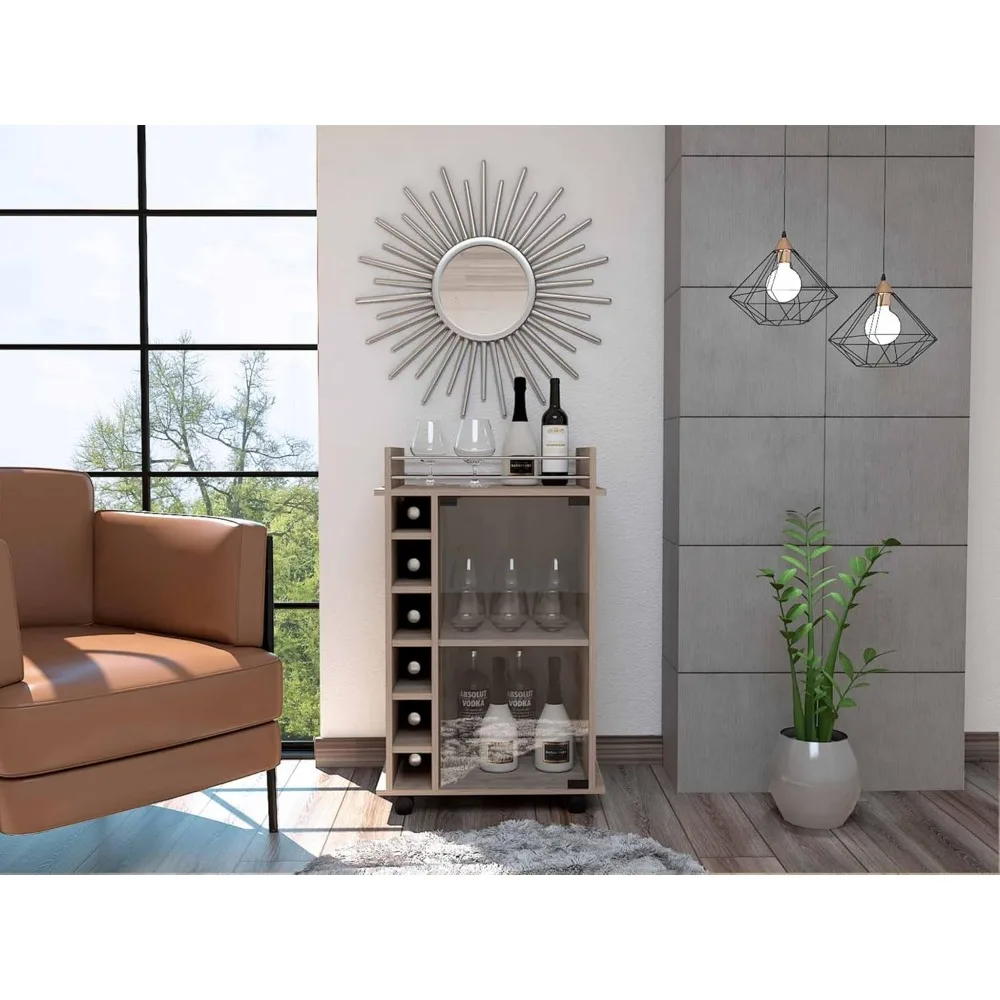 Wine Cabinet, Wooden Wine Cabinet, Open Movable Wine Cabinet, Light Gray, Living Room, Kitchen