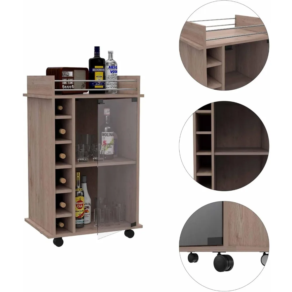 - Design features: This wine cabinet is not only an open design, but also has small wheels at the bottom of the cabinet, making it convenient for you to move and use.