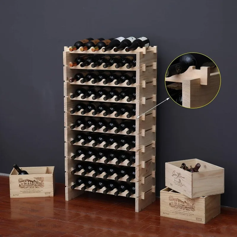 Wine Rack Solid Wood Stackable Storage Wooden Wine Rack Wine Cabinet (60 Bottles Natural Color) Assembly Required