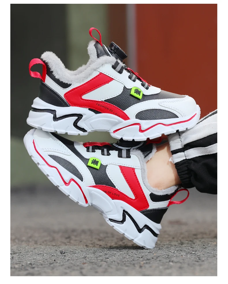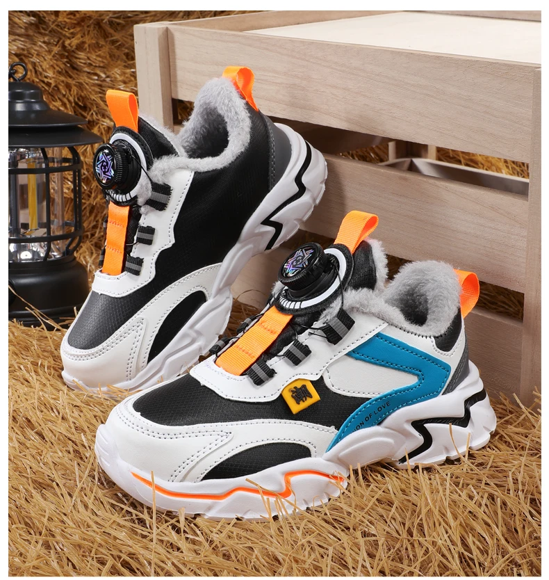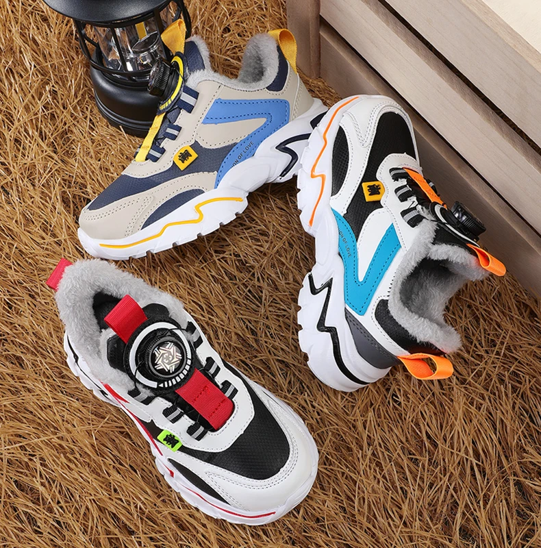 Winter 2024 Children Casual Sports Shoes Brand Kids Leather Fashion Sneakers Boys Girls Non-slip Warm Snow Boots