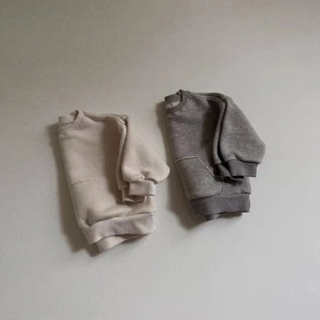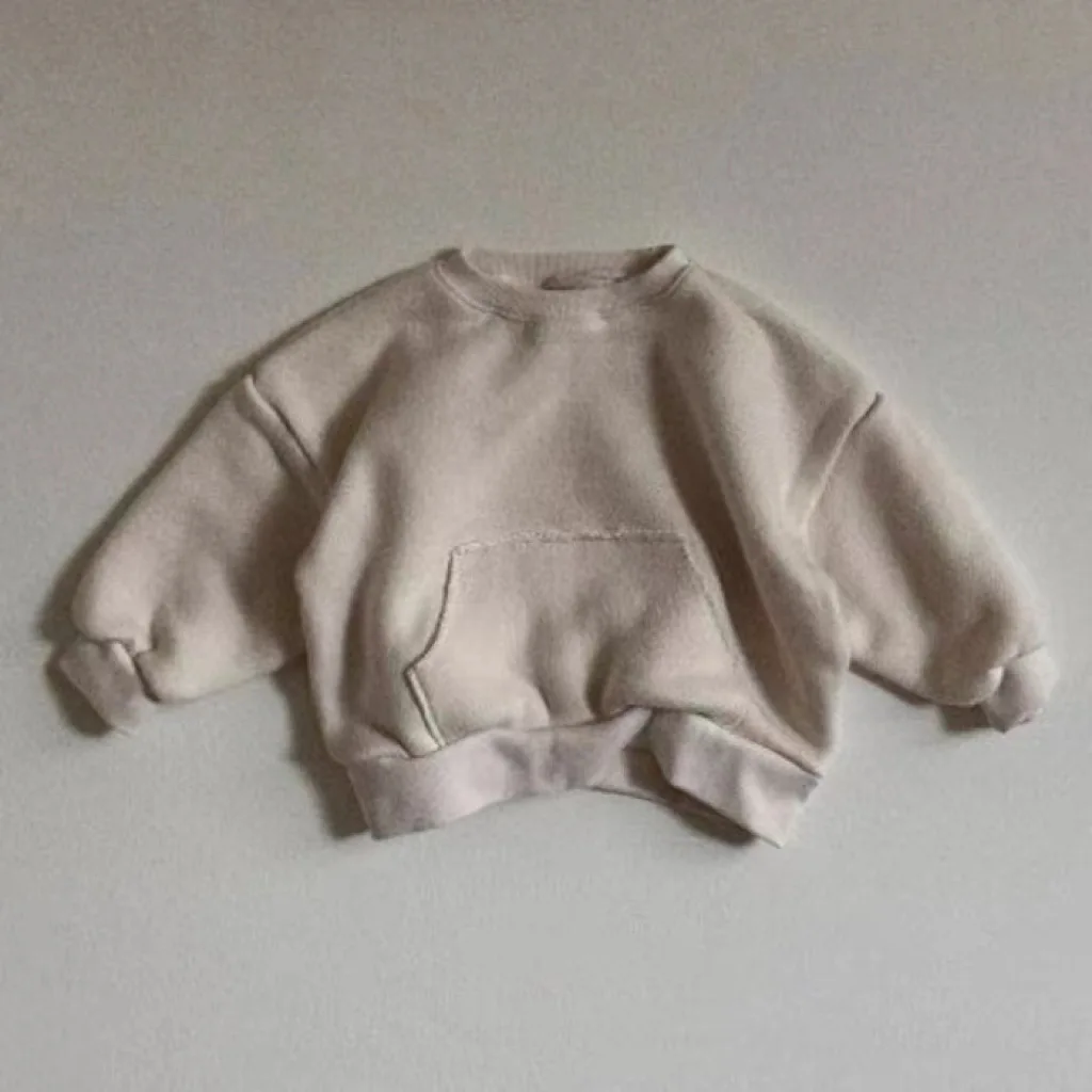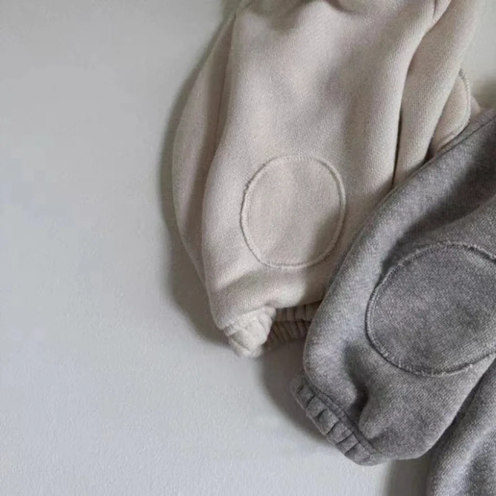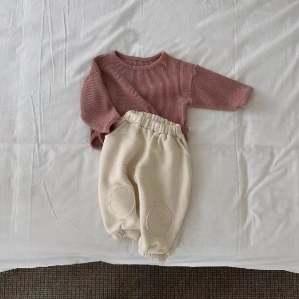 Winter Baby Fleece Sweatshirt Set Infant Boy Girl Solid Casual Tops + Patch Pants 2pcs Suit Plus Velvet Thick Kids Warm Outfits