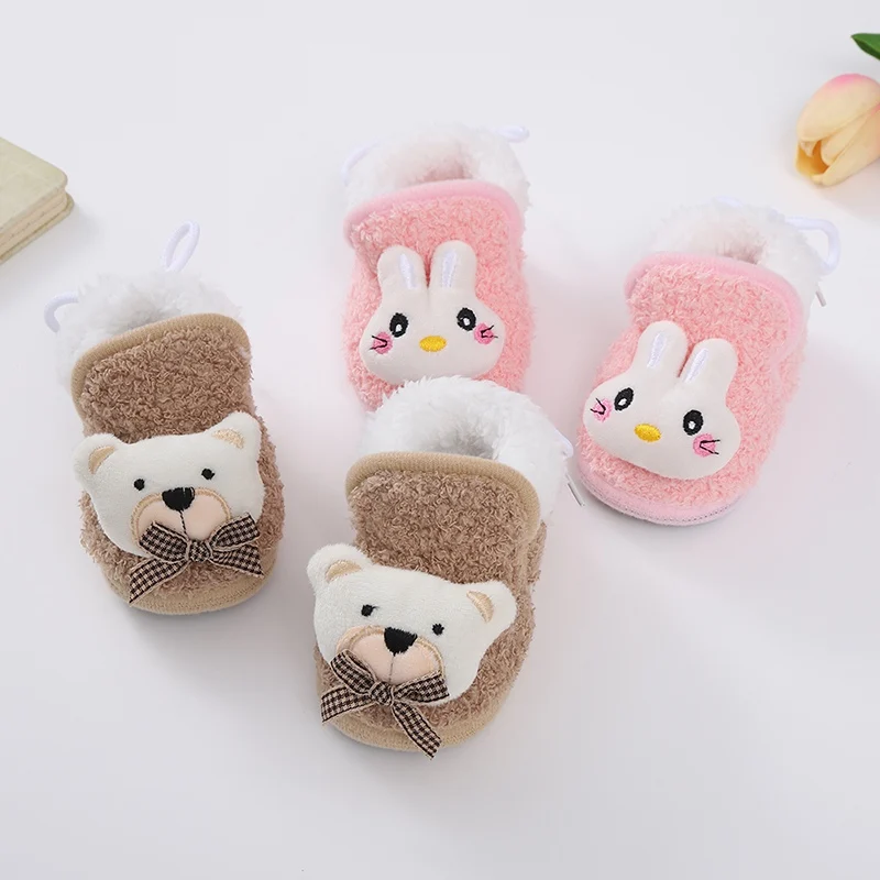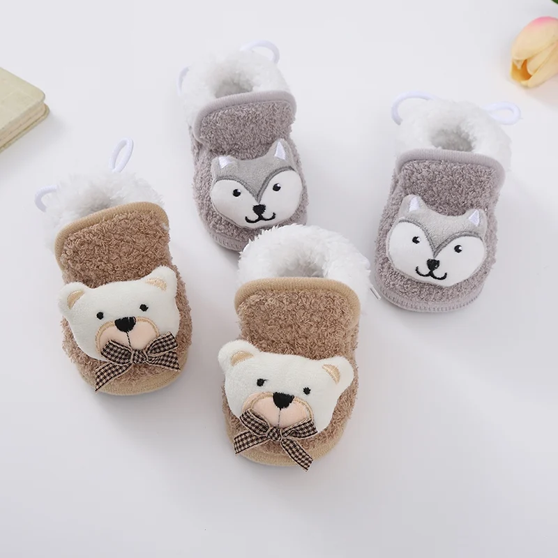 Winter Baby Shoes Boys Girls Booties Warm Cartoon Animal Toddler Cotton Walking Shoes Infant Soft Anti-slip Newborn Crib Shoes