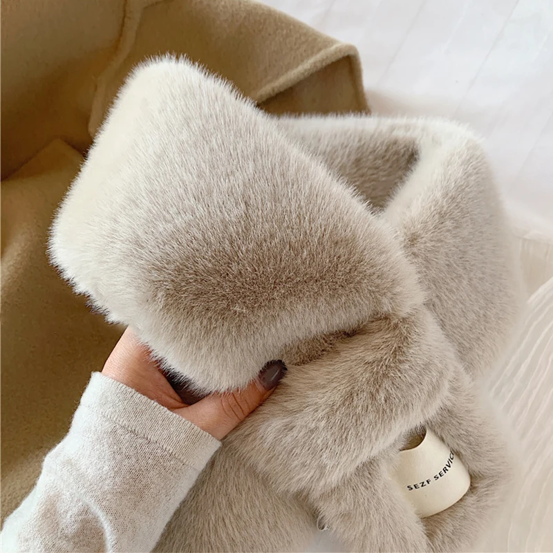 Winter Faux Fur Women Scarf Soft Plush Warm Cross Collar Shawl Neck Collar Warmer Soft Scarf Neckerchief Girls Christmas Gift