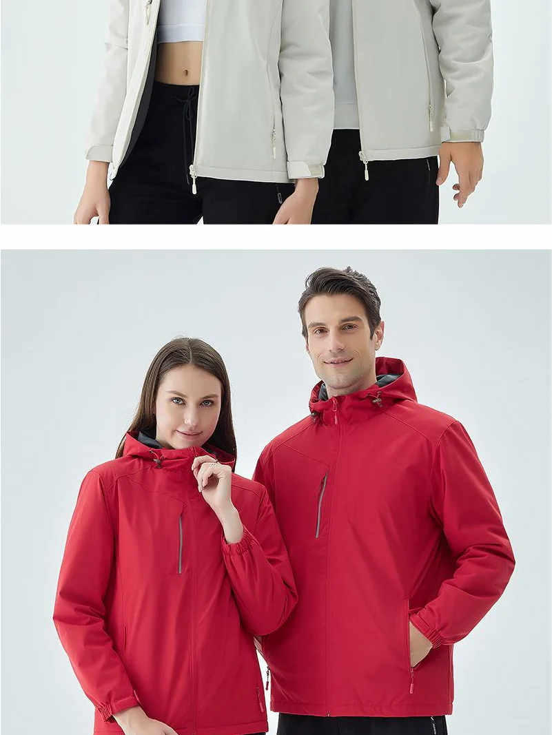 Winter Jacket SolidColor Warm Waterproof Windproof Coat Men/Women Outdoor Camping Thick Hooded Zipper Jacket Custom Printed LOGO