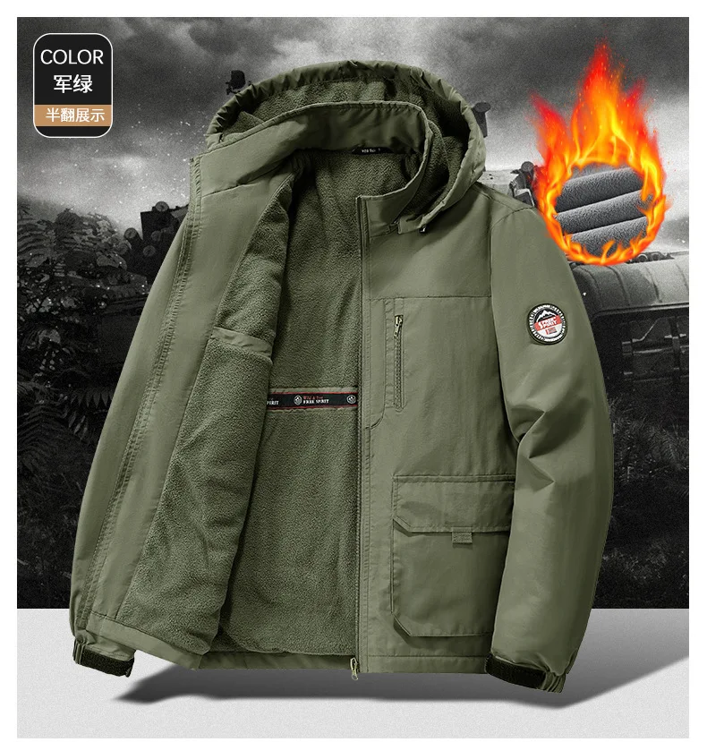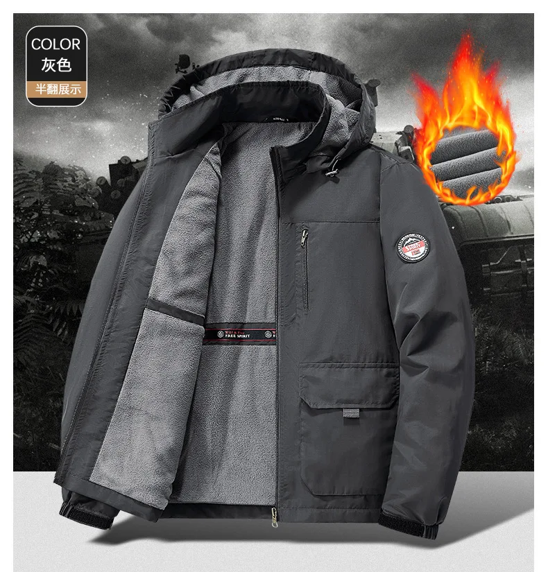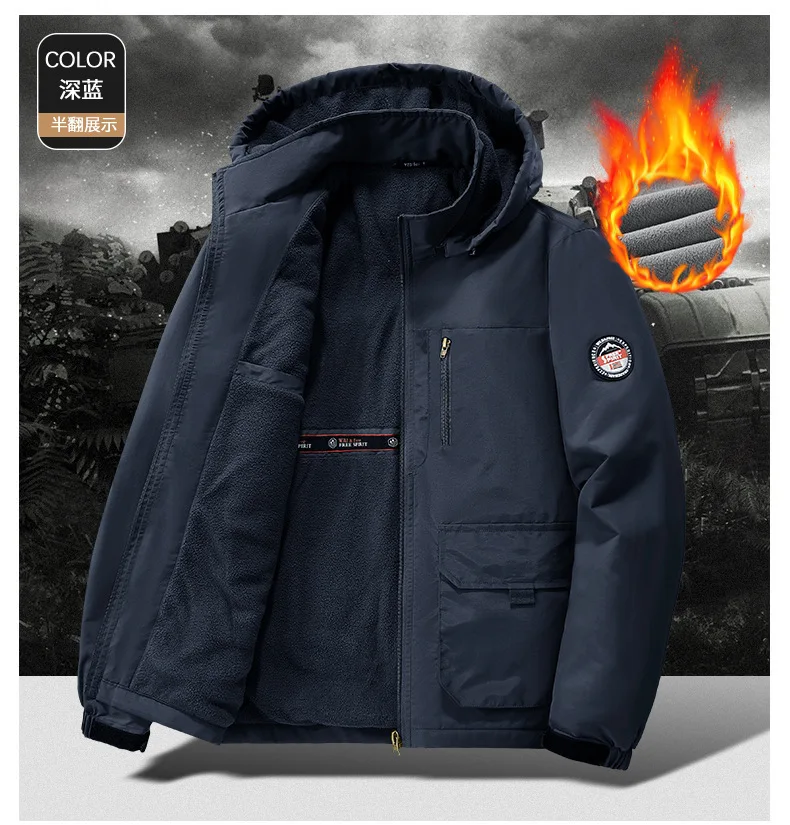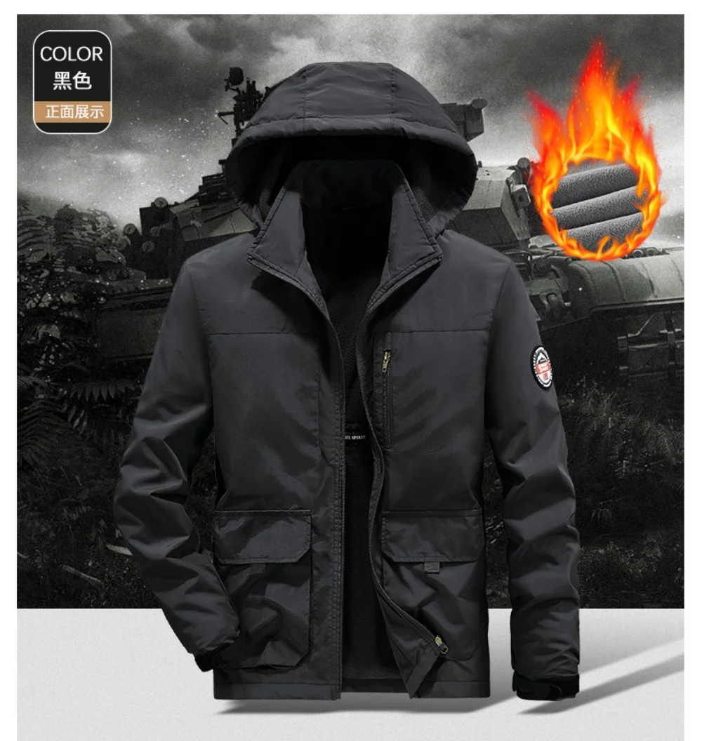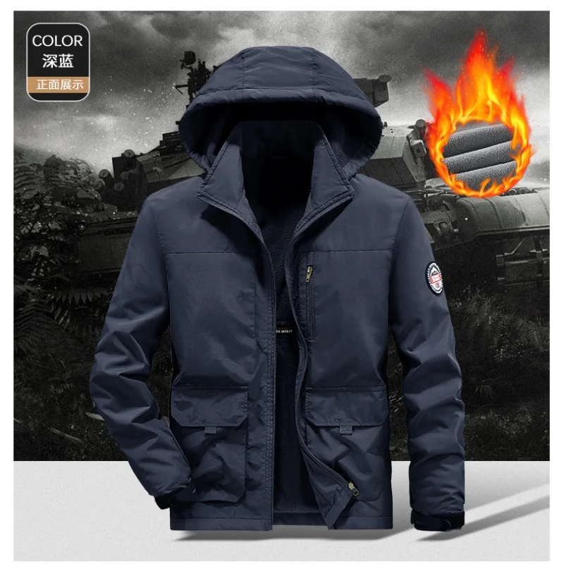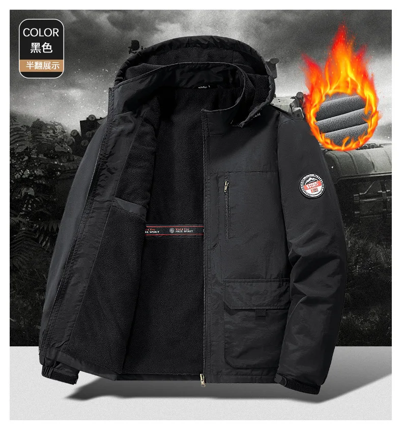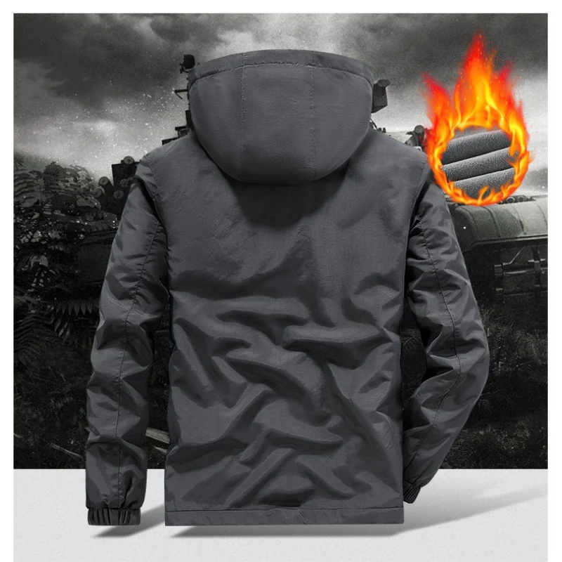 Winter Men Outdoor Windbreak Coat Fleece Warm Jacket Men Removable Hooded Waterproof Hiking Fishing Jacket Coat Male Clothing