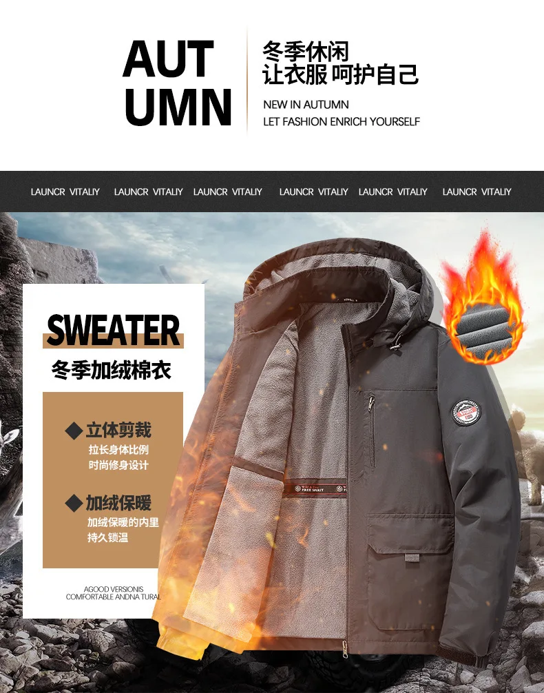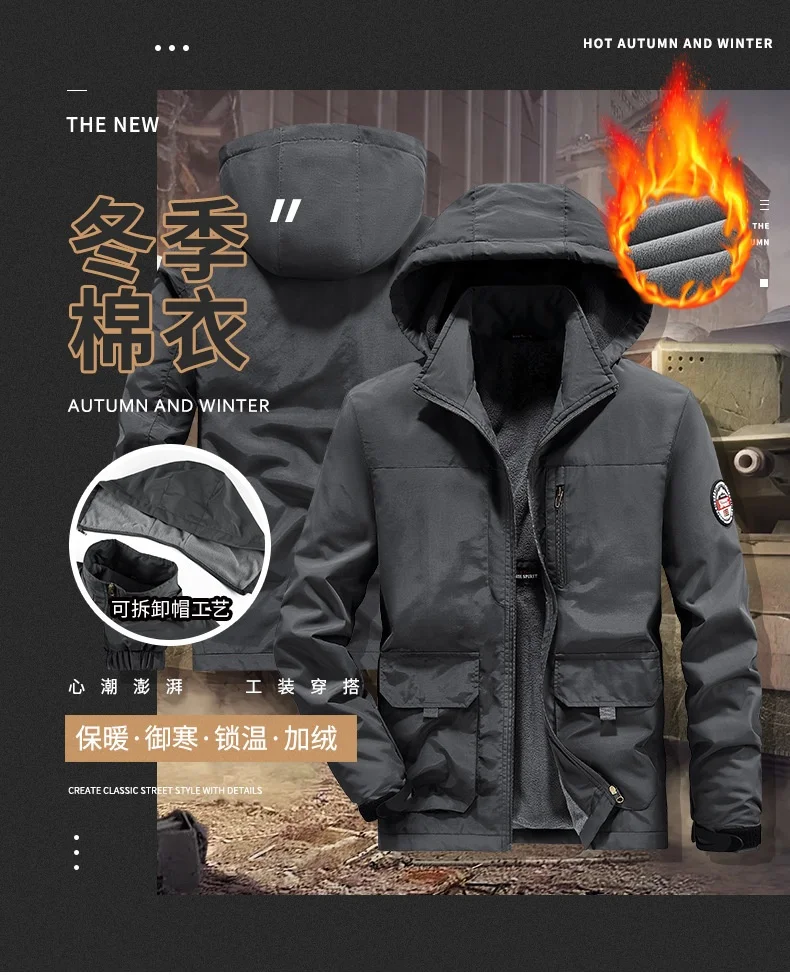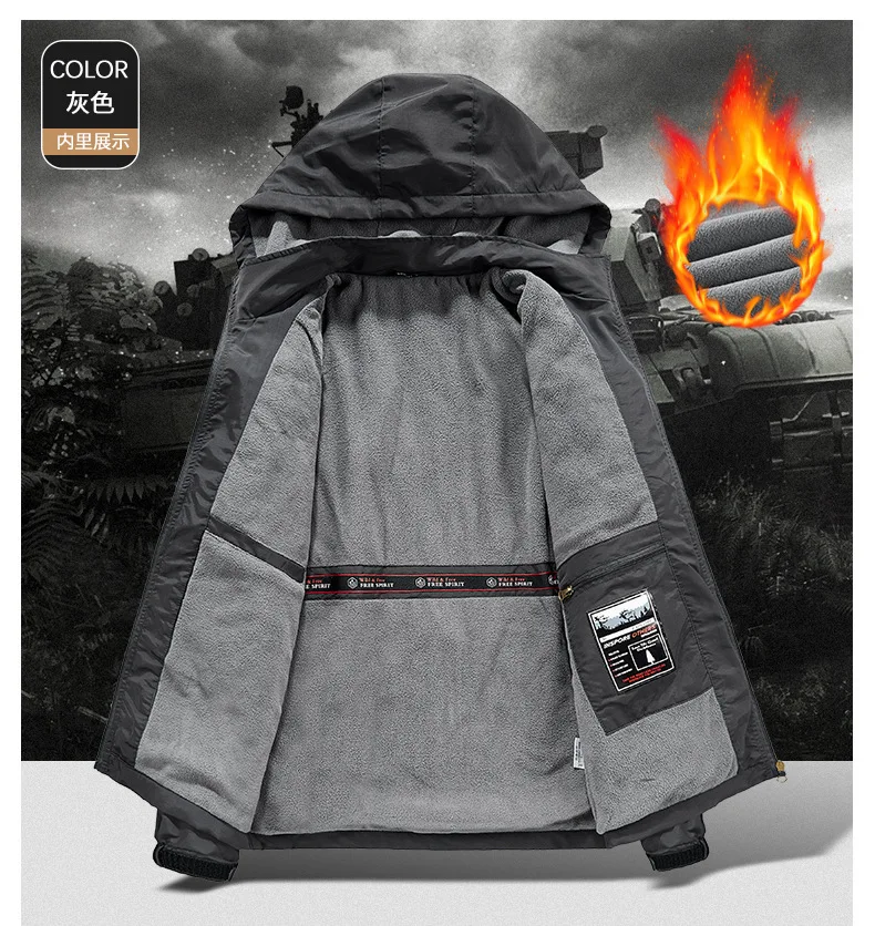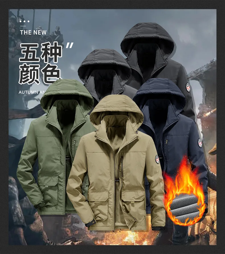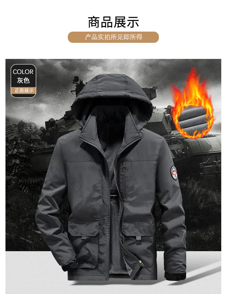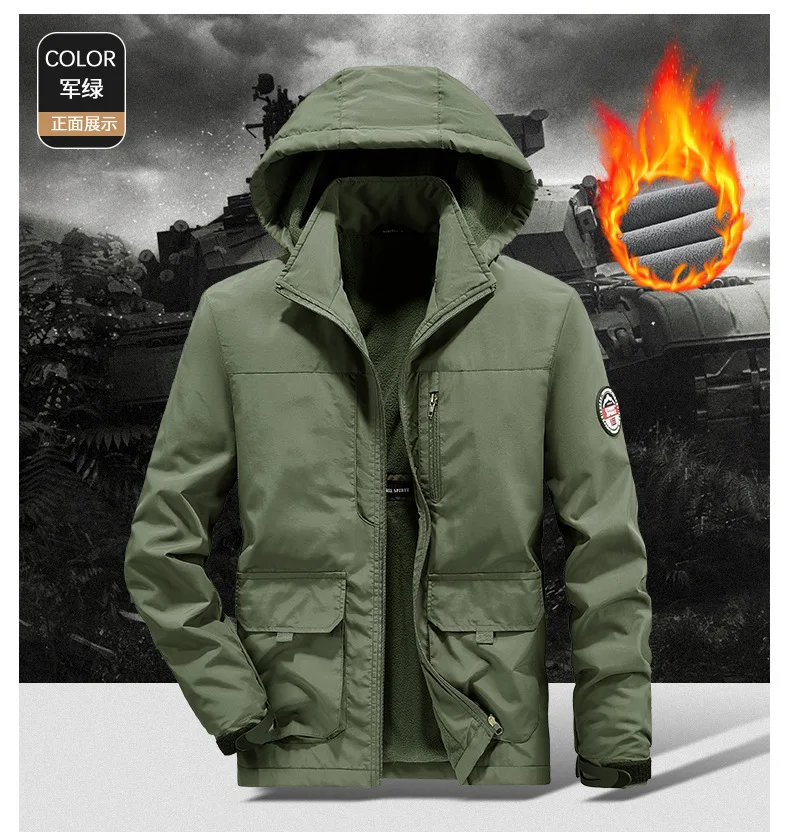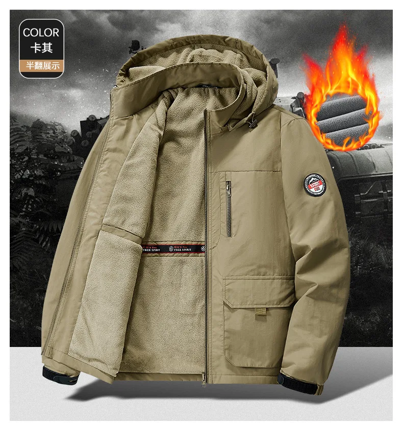 Winter Men Outdoor Windbreak Coat Fleece Warm Jacket Men Removable Hooded Waterproof Hiking Fishing Jacket Coat Male Clothing