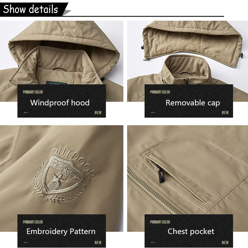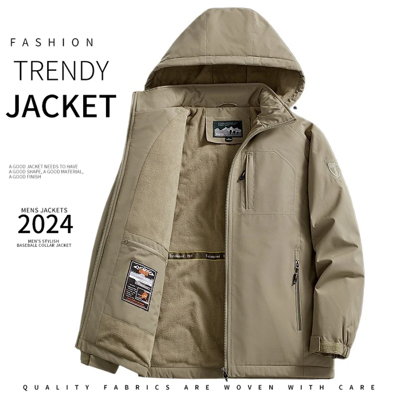 Winter Men Outdoor Windbreak Fleece Warm Jacket Men Removable Hooded Waterproof Casual Fashion Jacket Coat Male Clothing Hots
