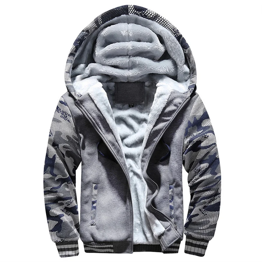 Winter Men’s Coat Camouflage Thick Warm Jackets for Men Fleece Long Sleeve Fur Coats Casual Hooded Streetwear Outdoor Cardigan