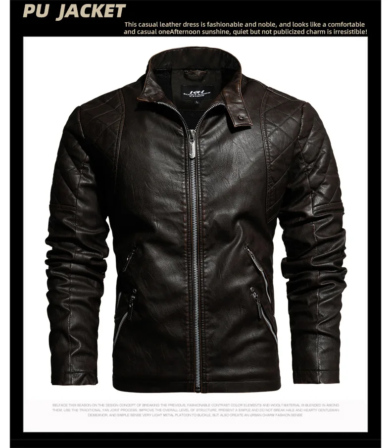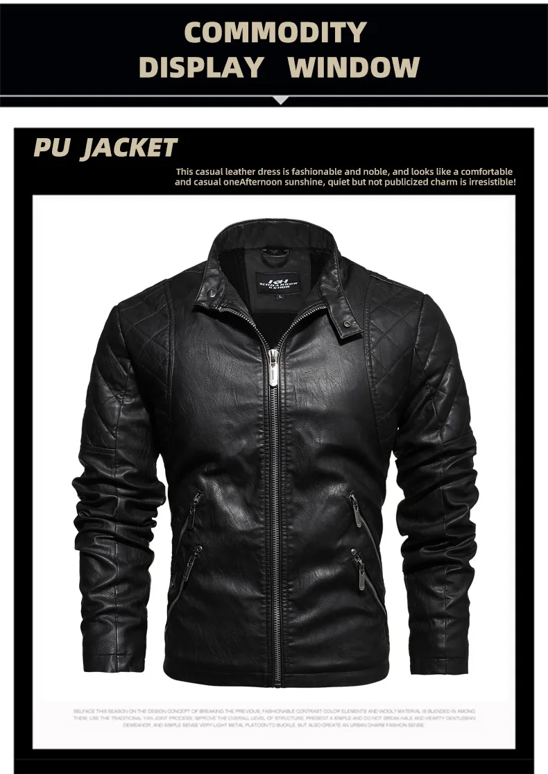 Winter Men’s Leather Jacket High-quality Stand Collar Liner Wool Thicken Warm Motorcycle Coat 4XL Male Faux Leather Jackets