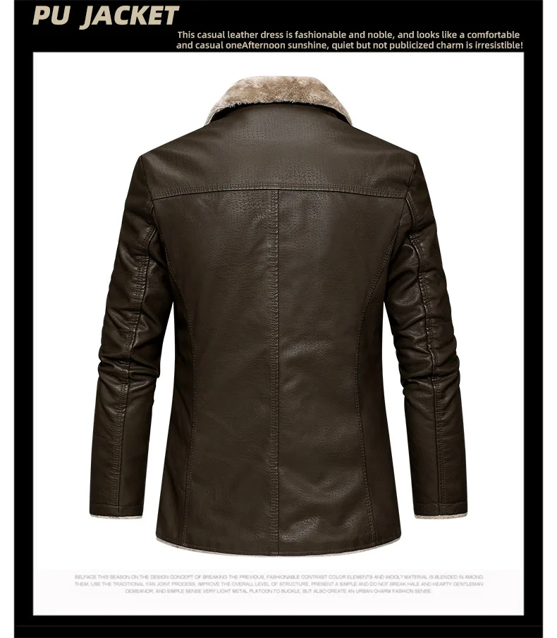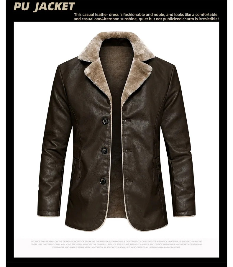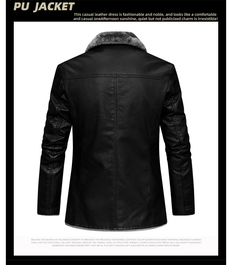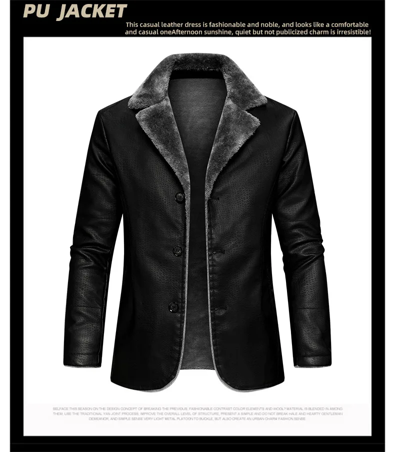 Winter Mens Leather Jacket High Quality Wool Thicken Warm Coats Street Fashion Solid Color Suit Collar PU Jackets Men Clothing