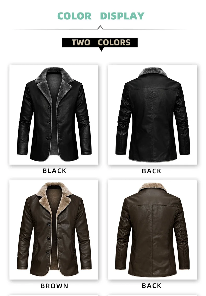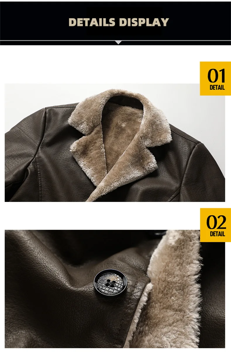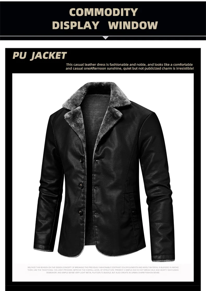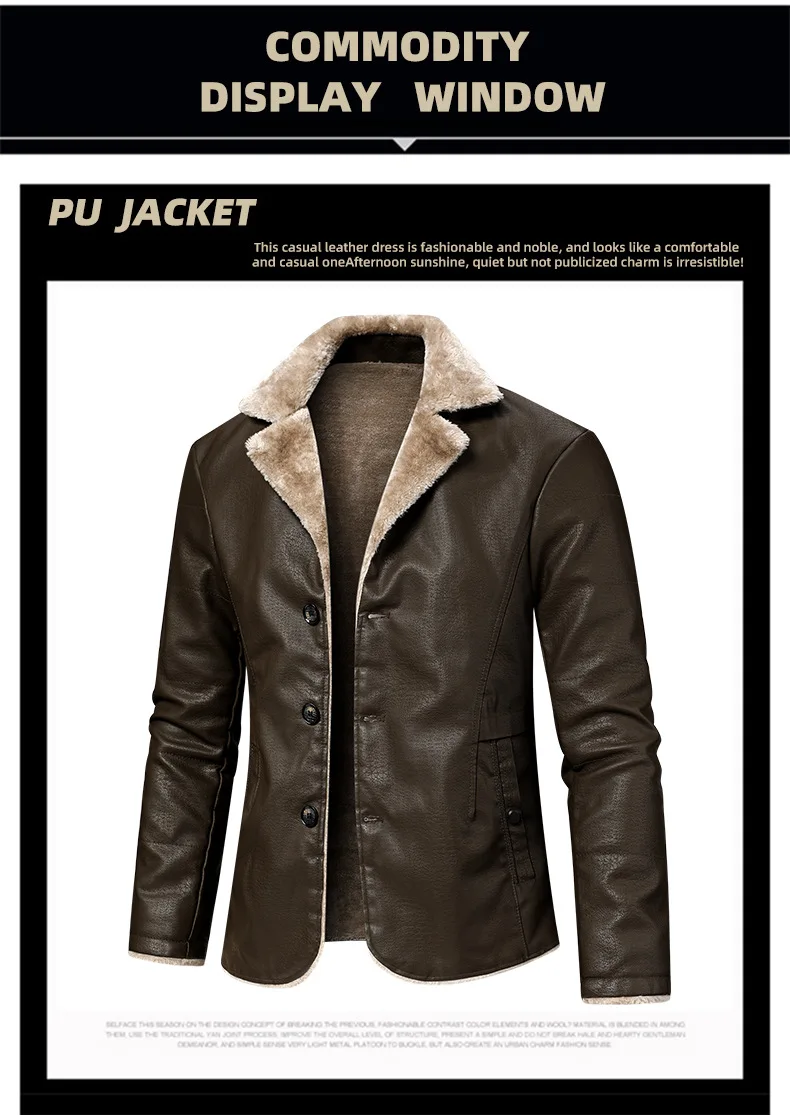 Winter Mens Leather Jacket High Quality Wool Thicken Warm Coats Street Fashion Solid Color Suit Collar PU Jackets Men Clothing