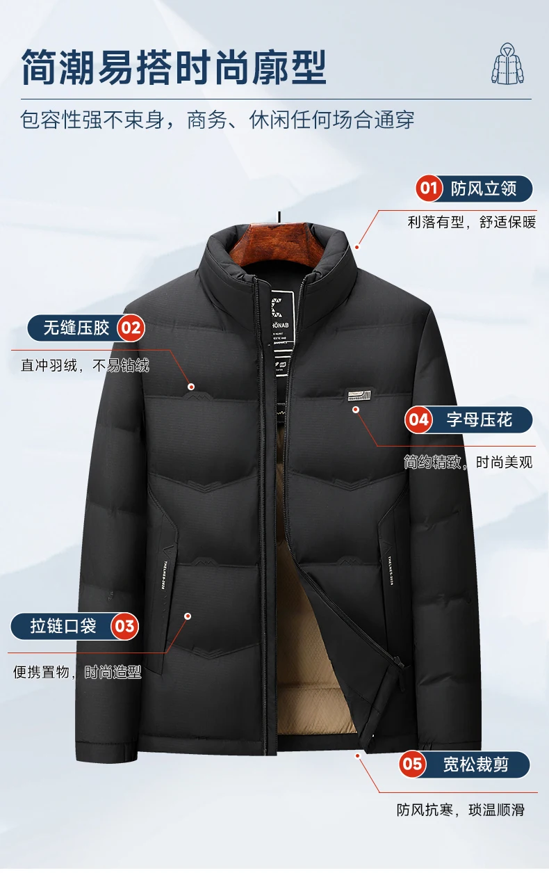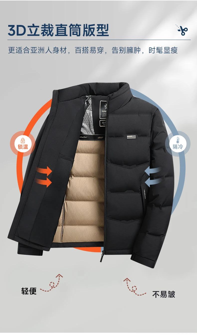 Winter Men’s Outdoor Camping Fashion Sports Mountaineering Skiing Down Jacket Light Warm Goose Down Casual Stand Collar Coat