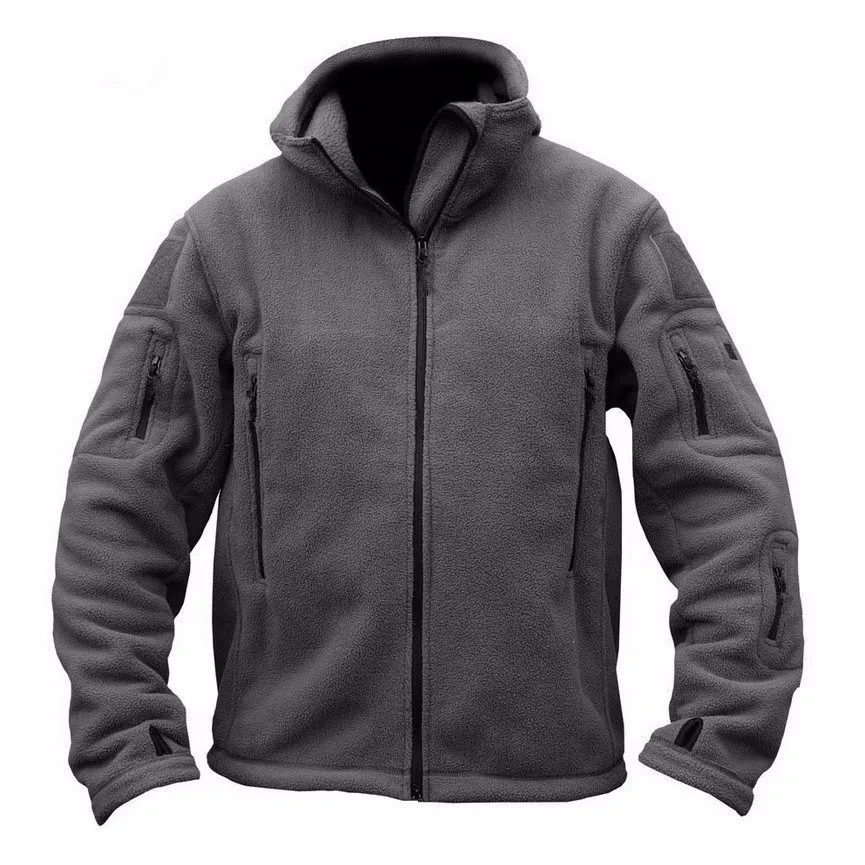 Winter New Fashionable Men’s Outdoor Warm and Cold Resistant Fleece Jacket Solid Color Loose Hooded Zipper Multi Pocket Jacket