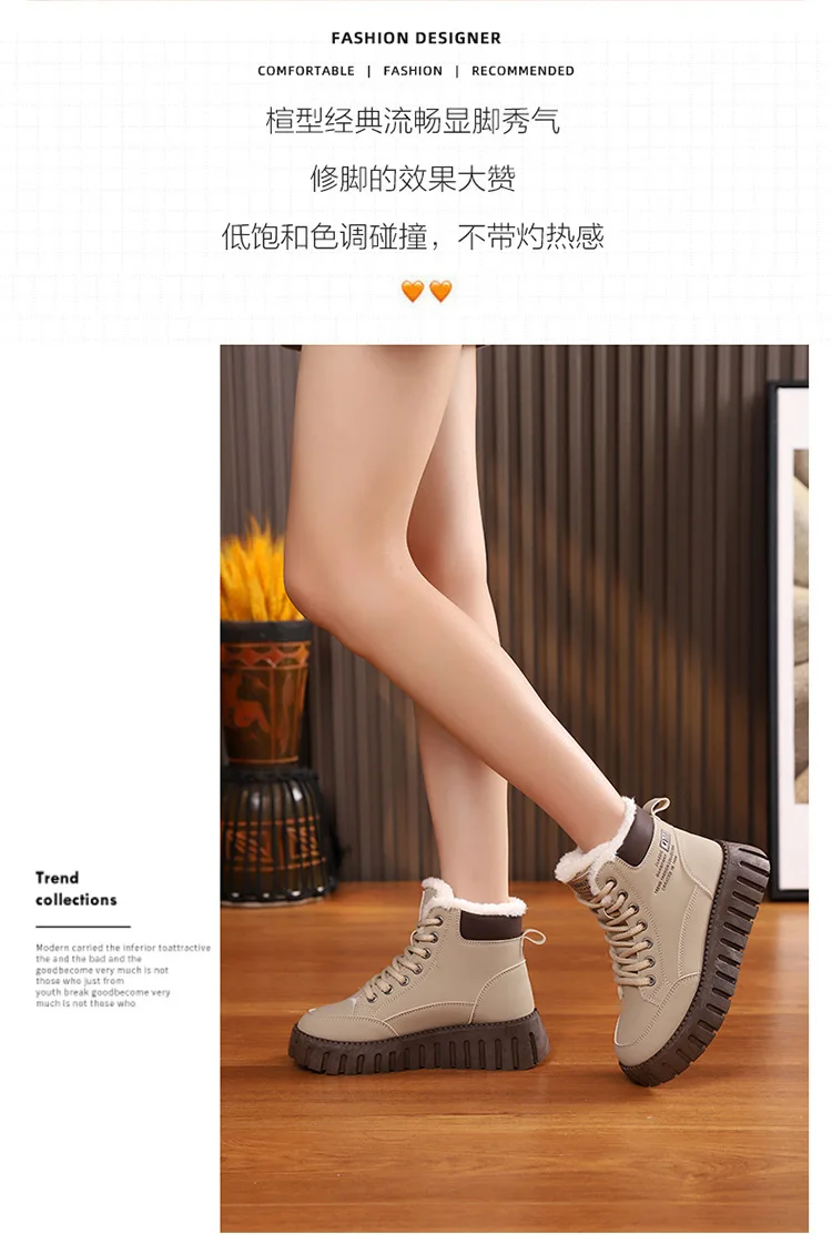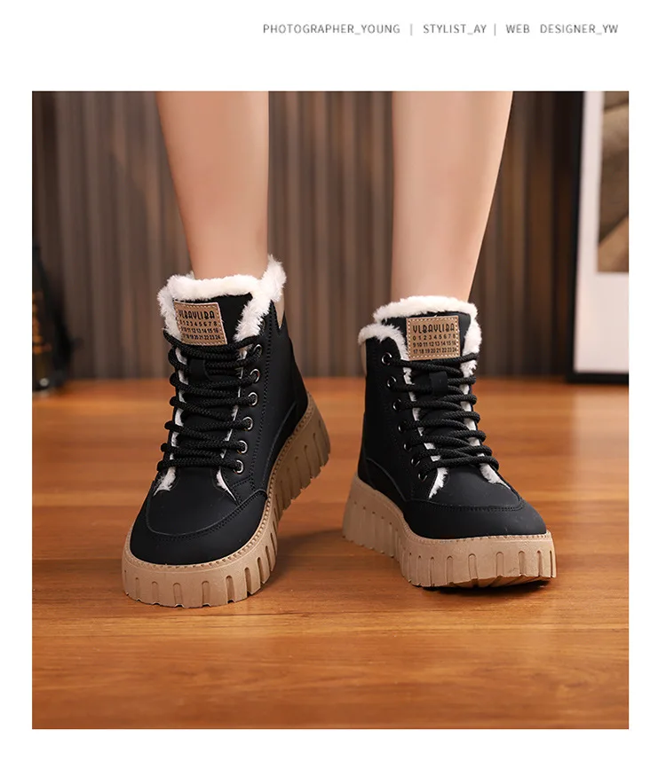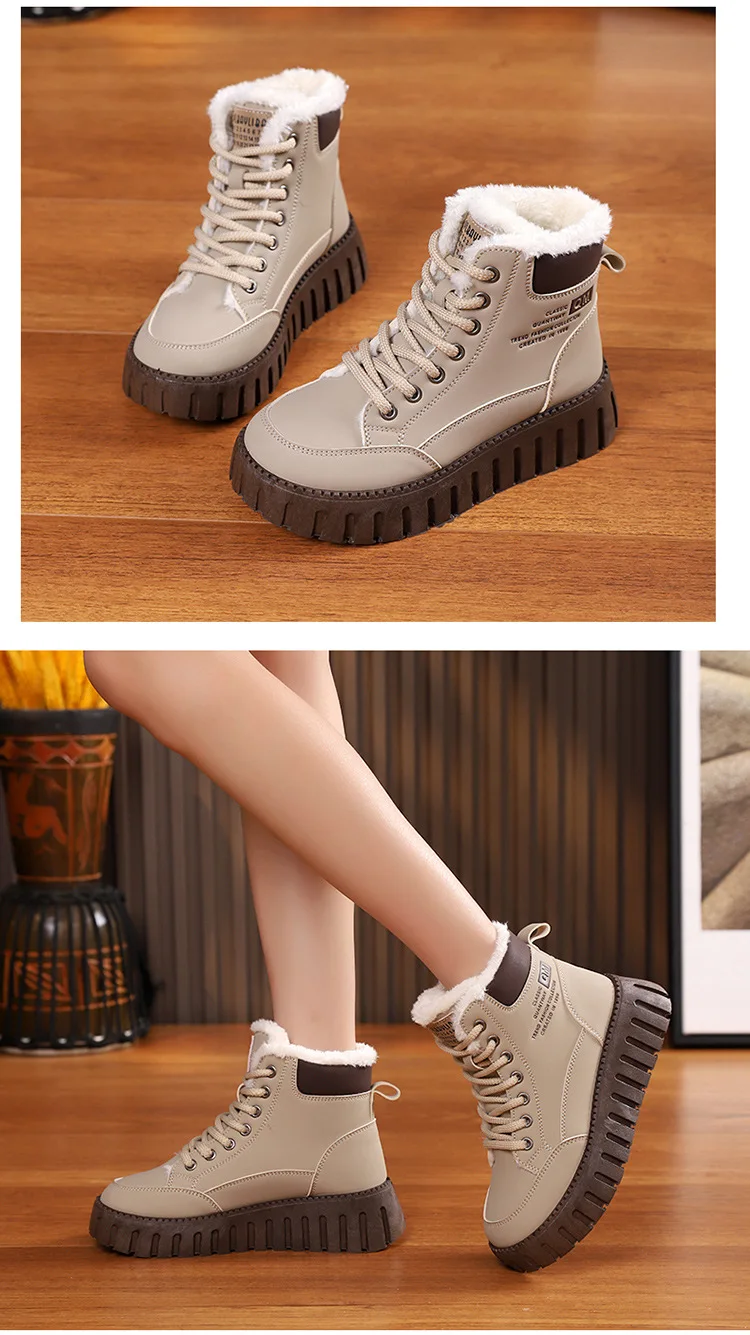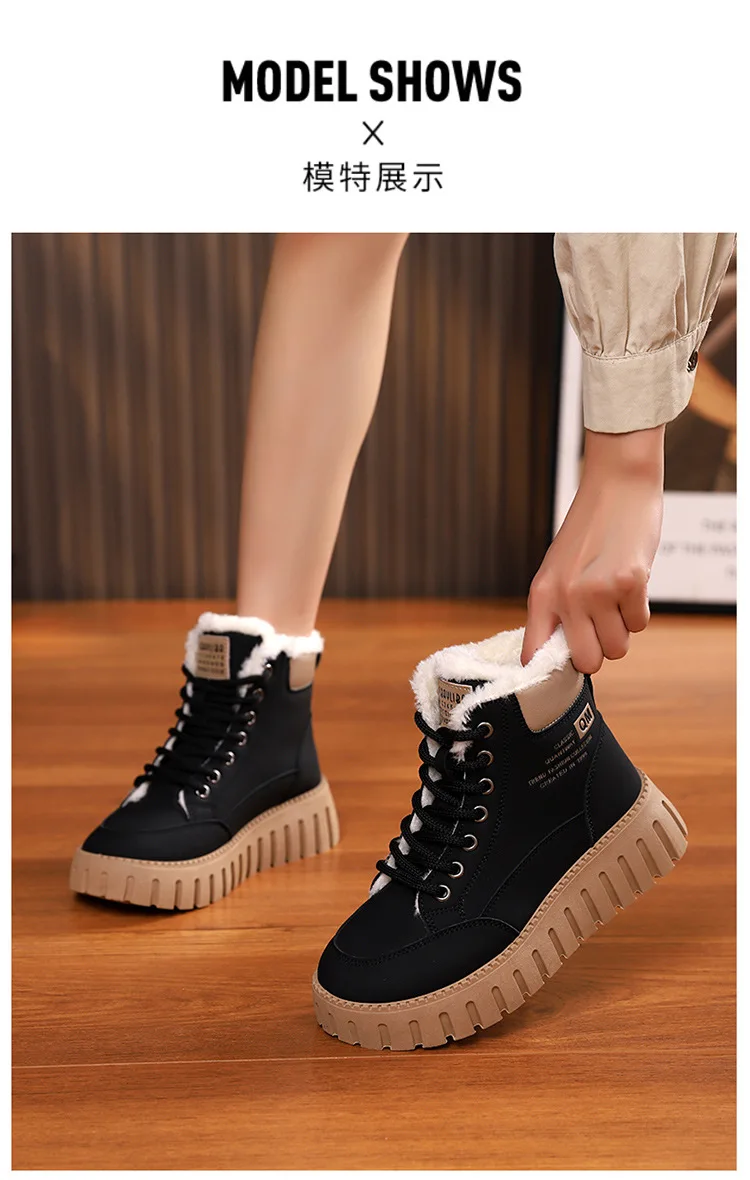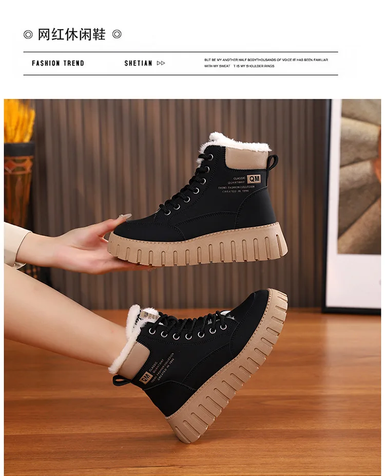 Winter New High-top Short Plush Women’s Ankle Boots Thick-soled Casual Warm Womens Snow Boots Fashionable Waterproof Ankle Boots
