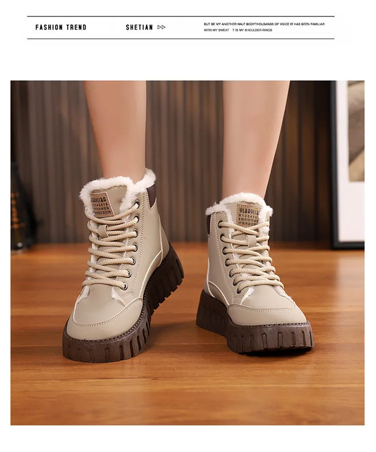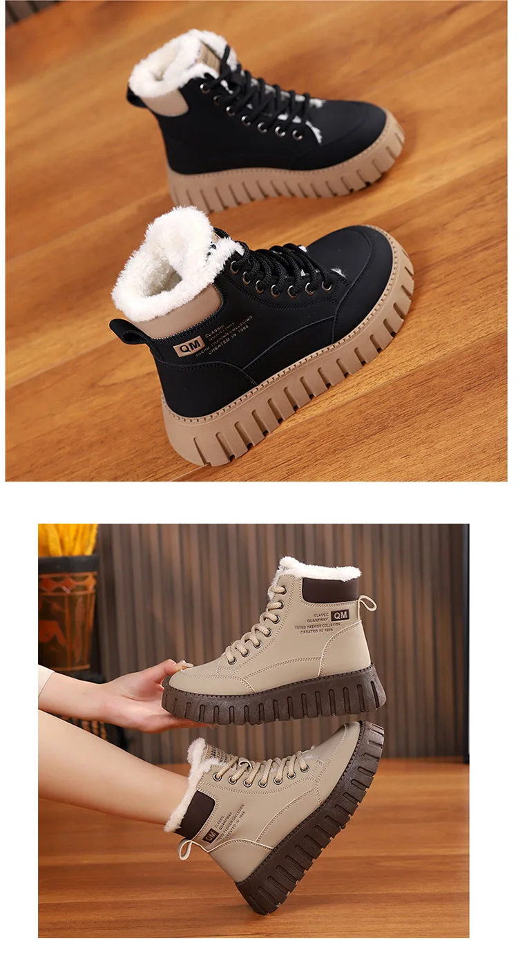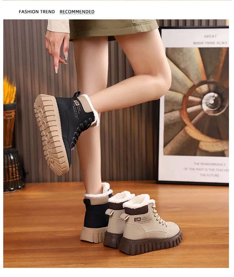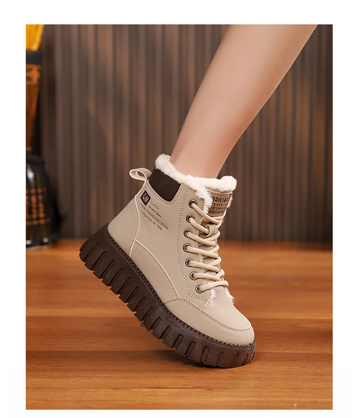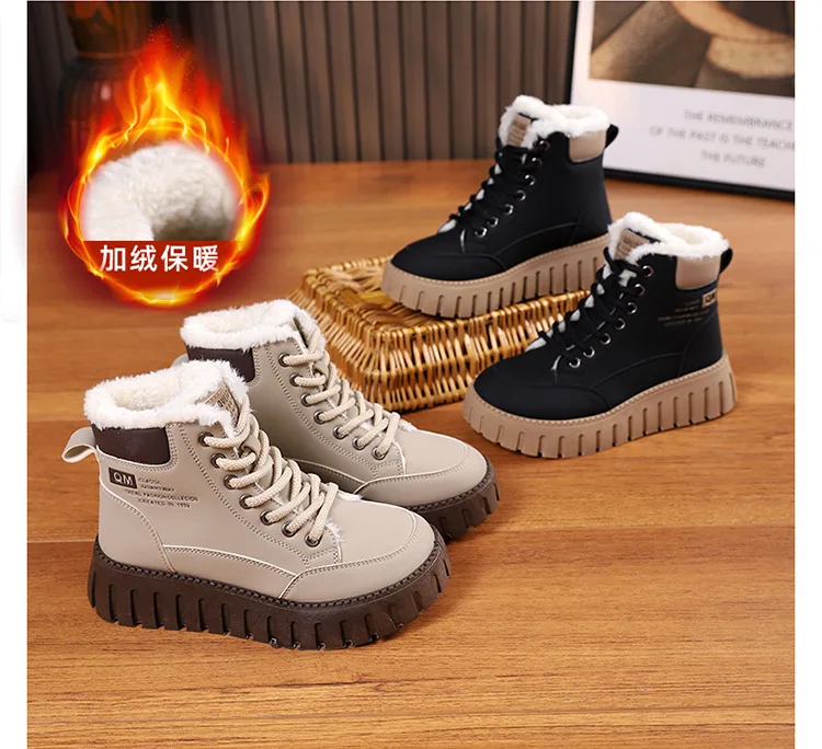 Winter New High-top Short Plush Women’s Ankle Boots Thick-soled Casual Warm Womens Snow Boots Fashionable Waterproof Ankle Boots