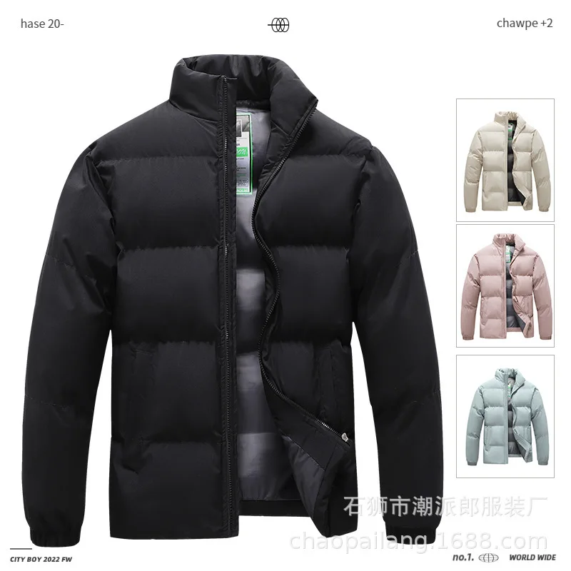 Winter new parka coat cotton coat stand collar warm windproof men’s and women’s warm pad jacket couple solid color jacket down j