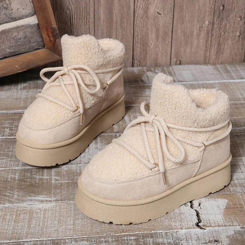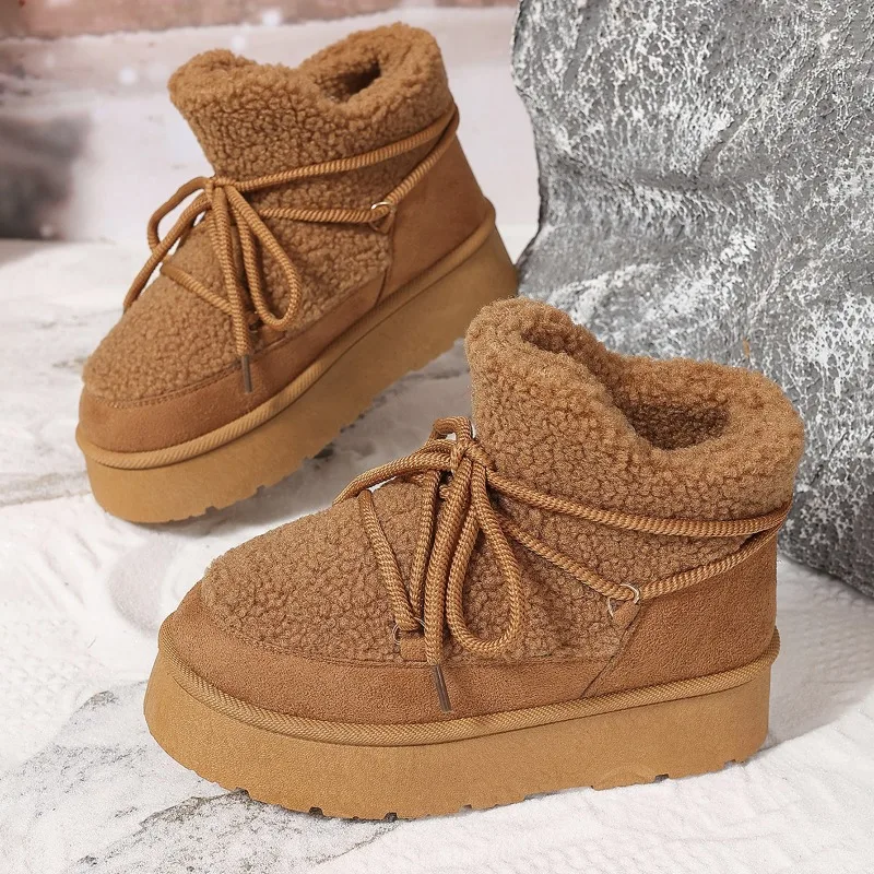 Winter New Thick Snow Boots Women’s Round Head Sleeve Splicing Suede Front Strap Anti-slip Wear-resistant Short Boots