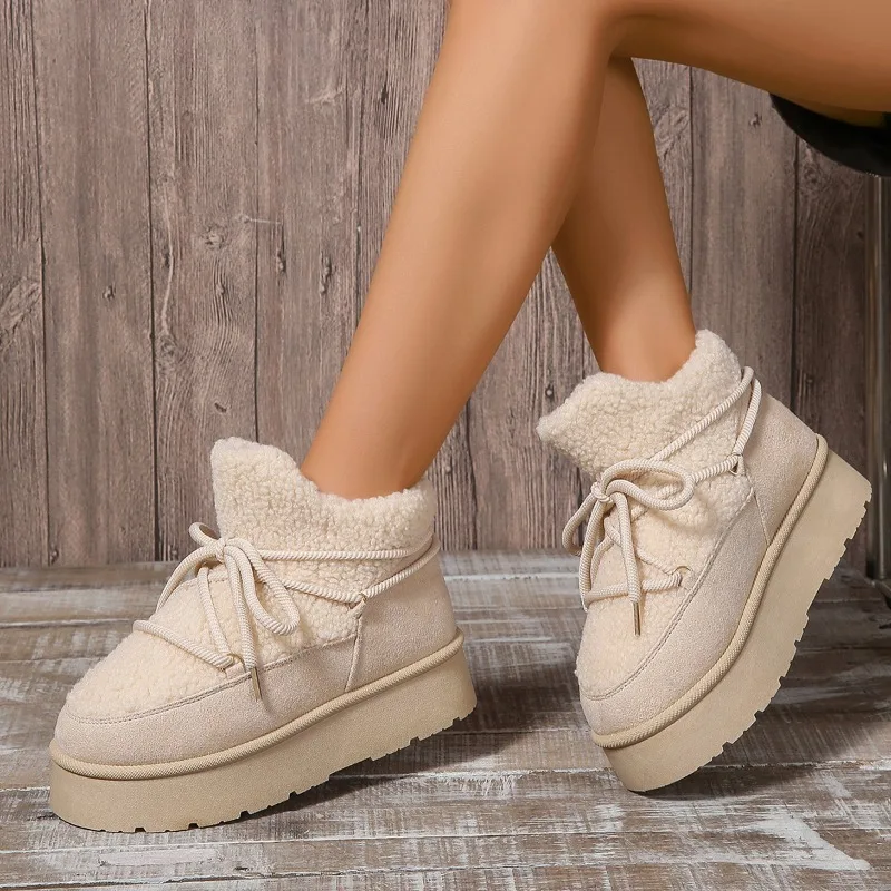 Winter Leather Women Boots Fashion Casual Shoes Women Warm Plus Velvet Black Ankle Boots Thick-Soled Cotton Sneakers Zapatillas