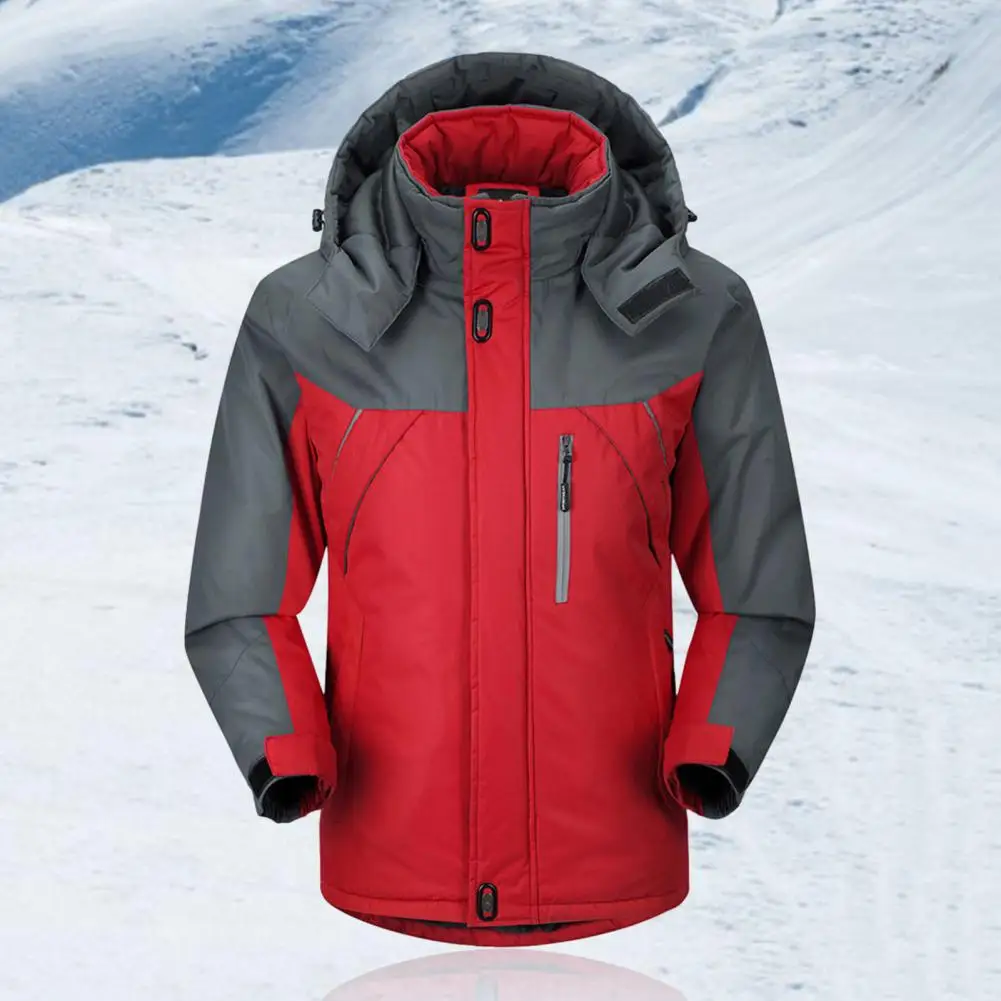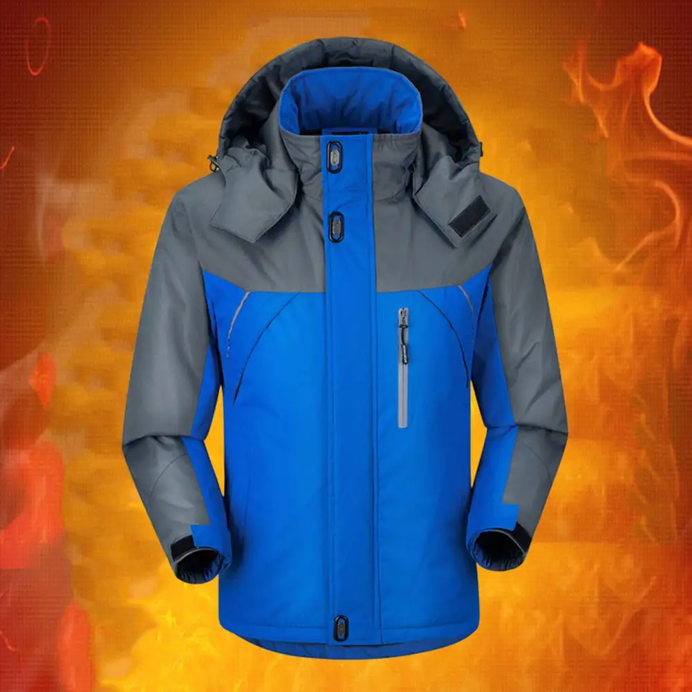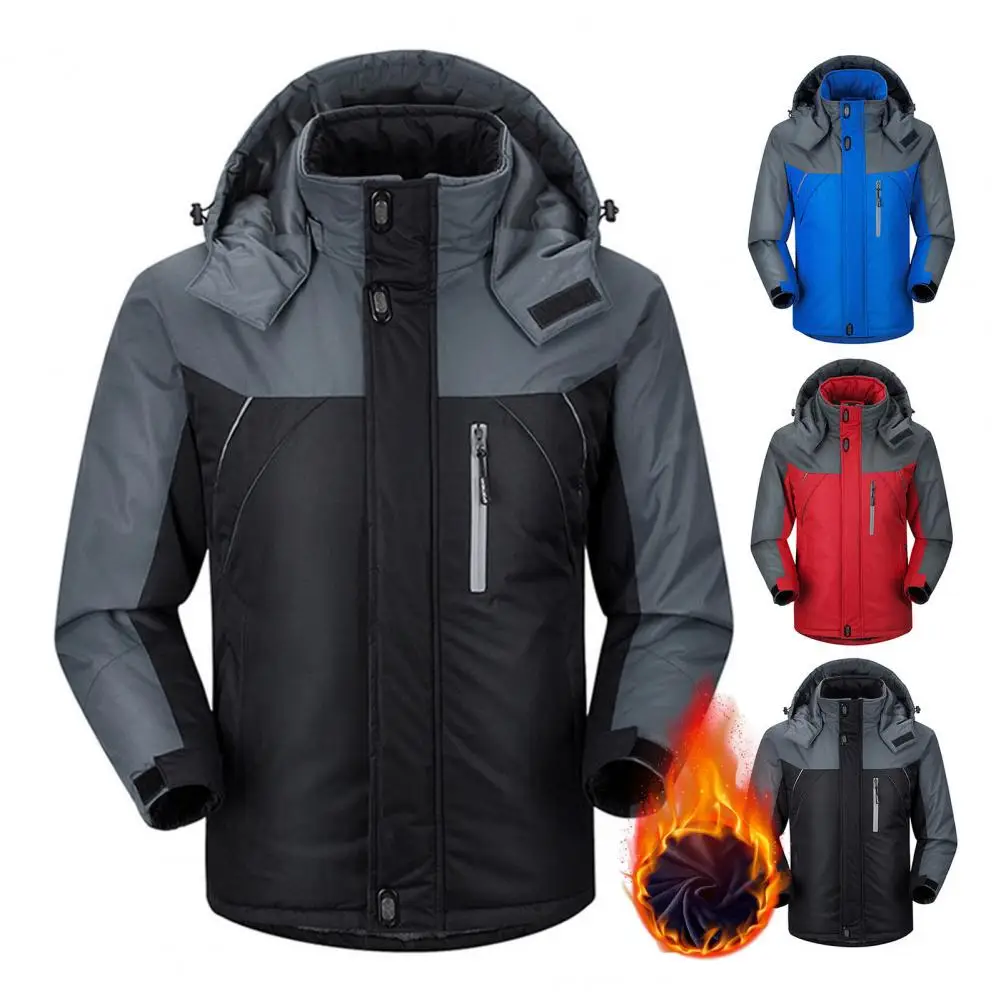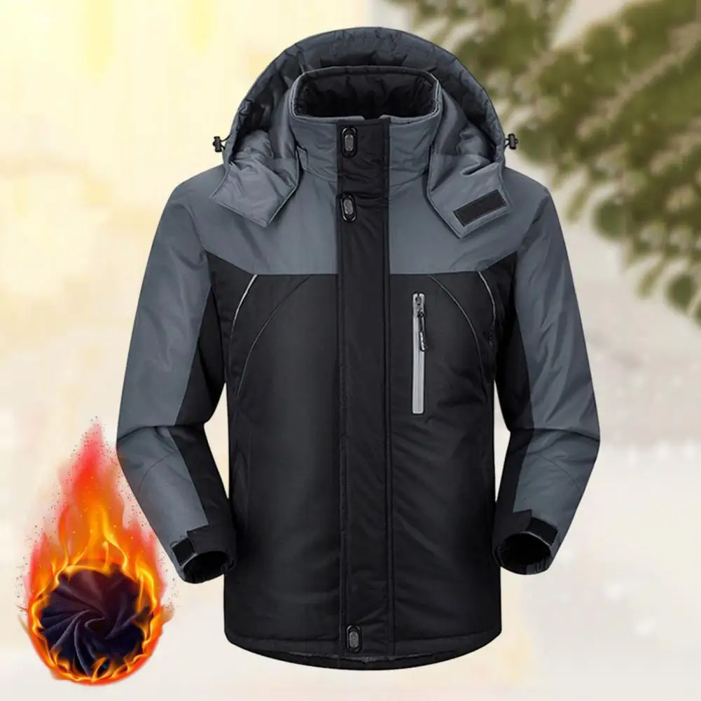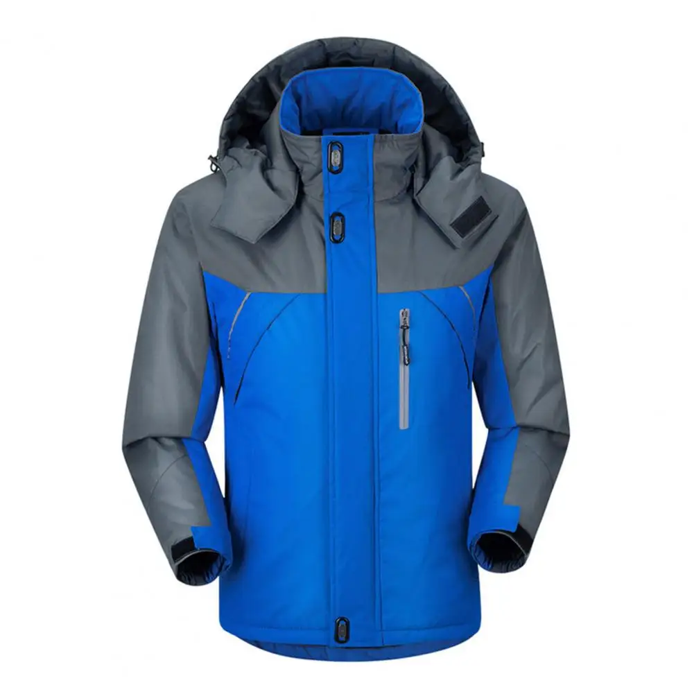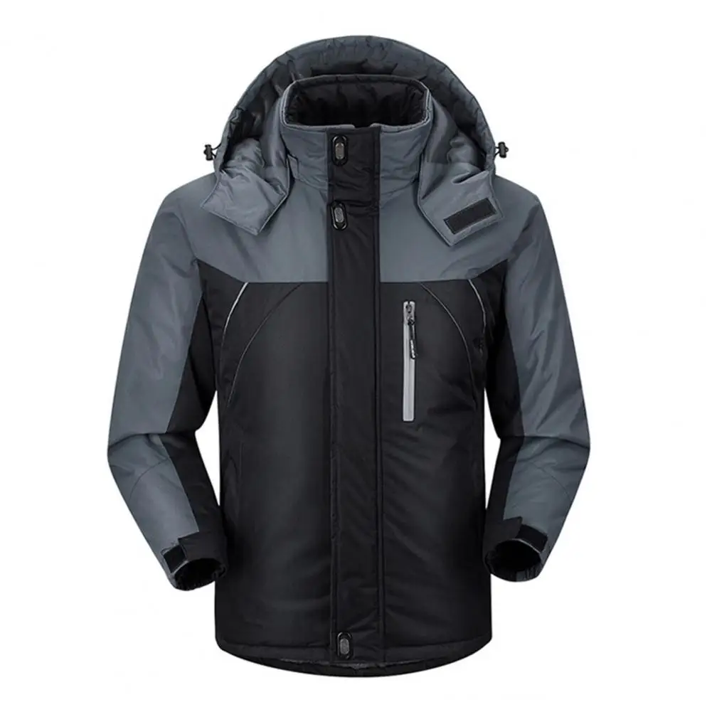 style=”margin-left:40px” Winter Outdoor Coat Stand Collar Neck Hooded Long Sleeve Thick Padded Cold-proof Zipper Closure Windproof Plus Size Men Winter Jacket