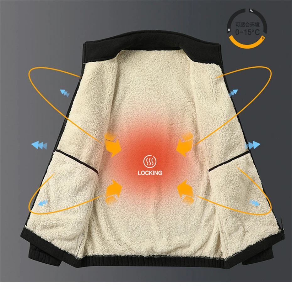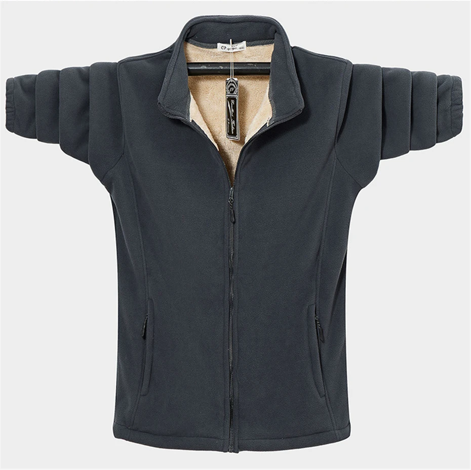 Winter Thick Fleece Jacket Men Solid Color Fleece Coats Plus Size 8XL 9XL Fashion Casual Winter Warm Jackets Male Outerwear