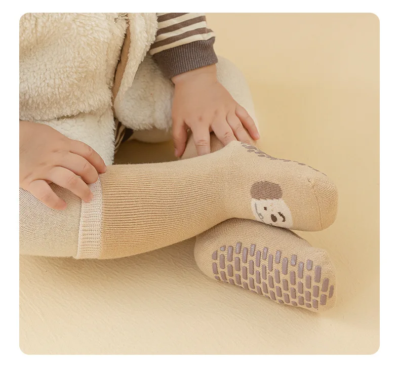 Winter Thicken Cotton Warm Thermal Stocking Children Cute Cartoon Letter Anti-slip Floor Long Tube Socks for Baby Boys Girls
