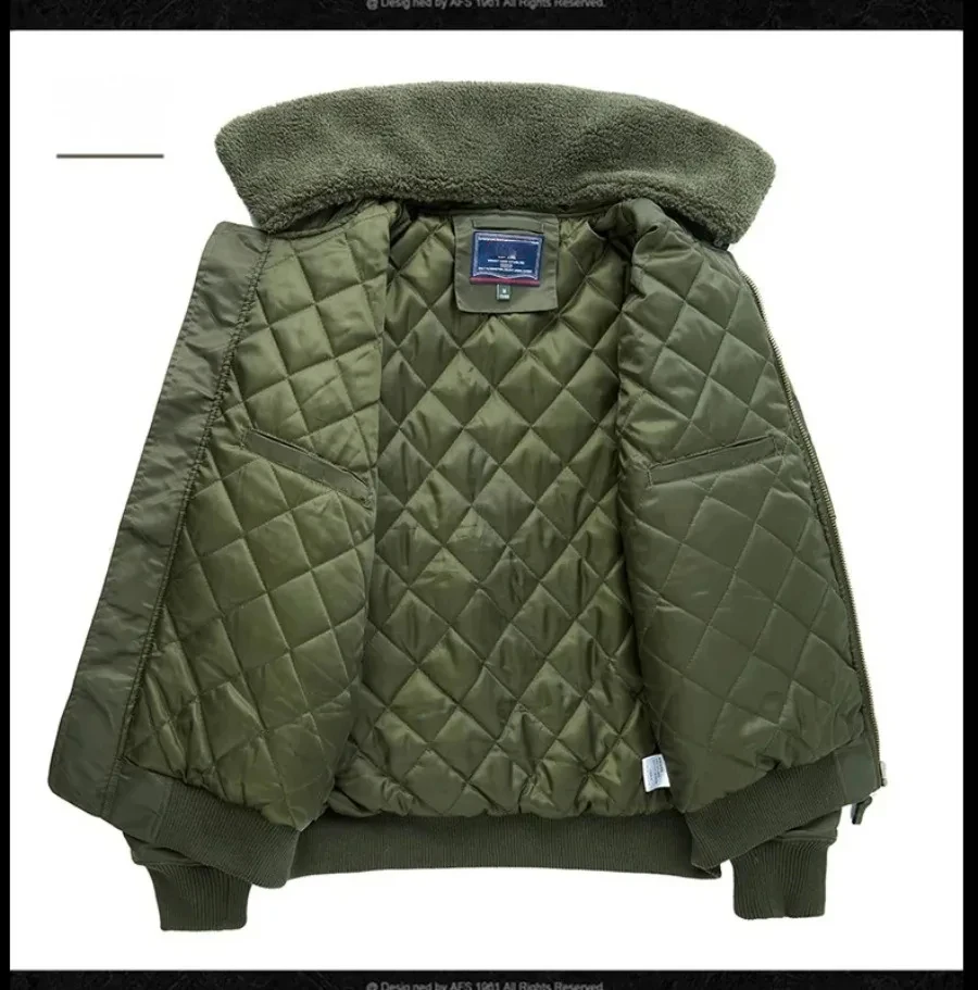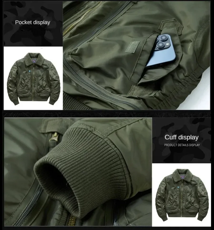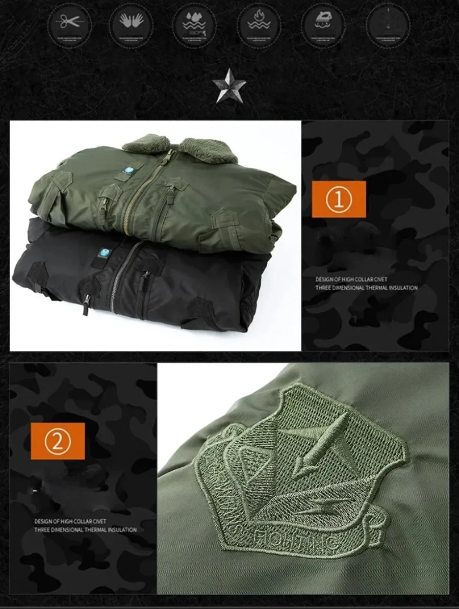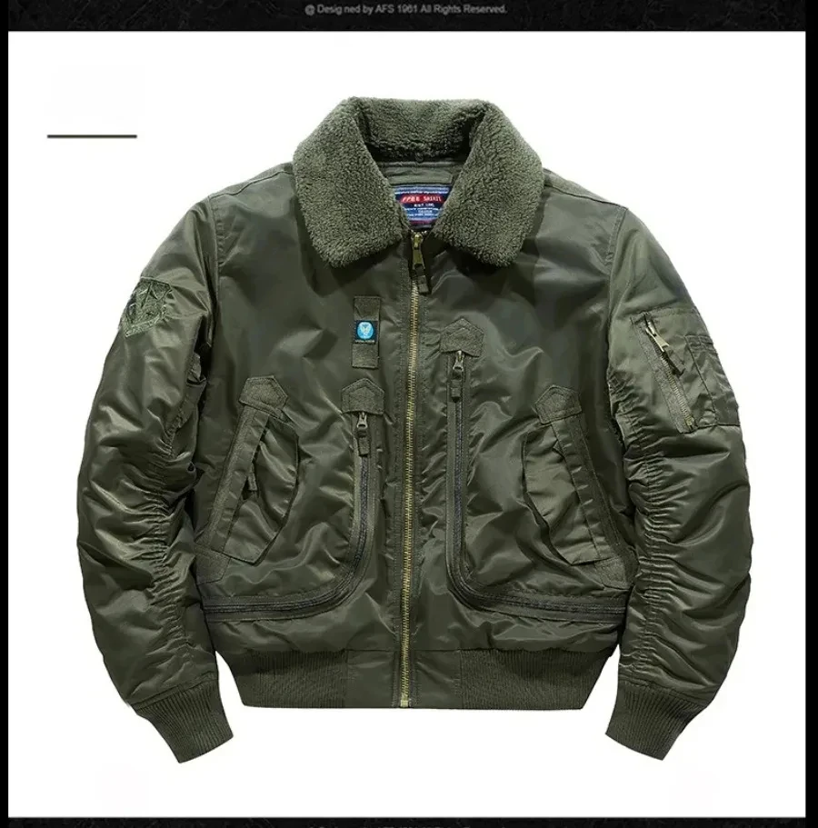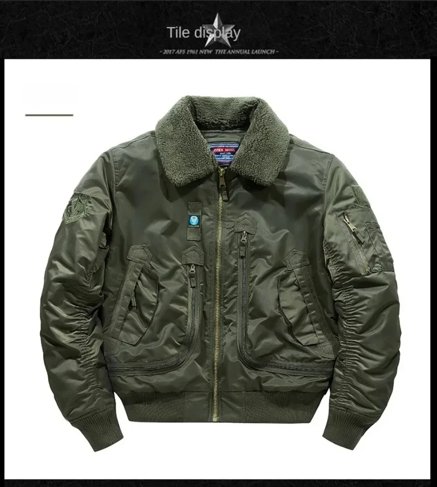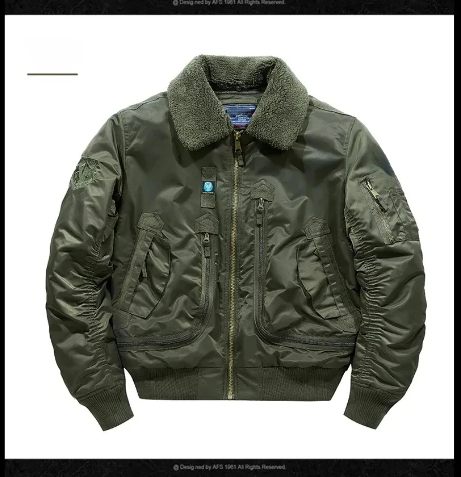 Winter Warm Jacket Mens Functionl Unloading Jacket Large Pocket Pilot MA-1 Green Bomber Jacket Fur Collar Thickened Hunting Coat