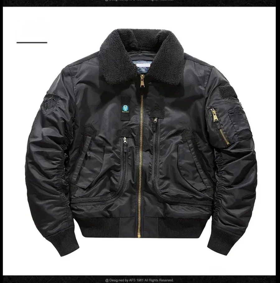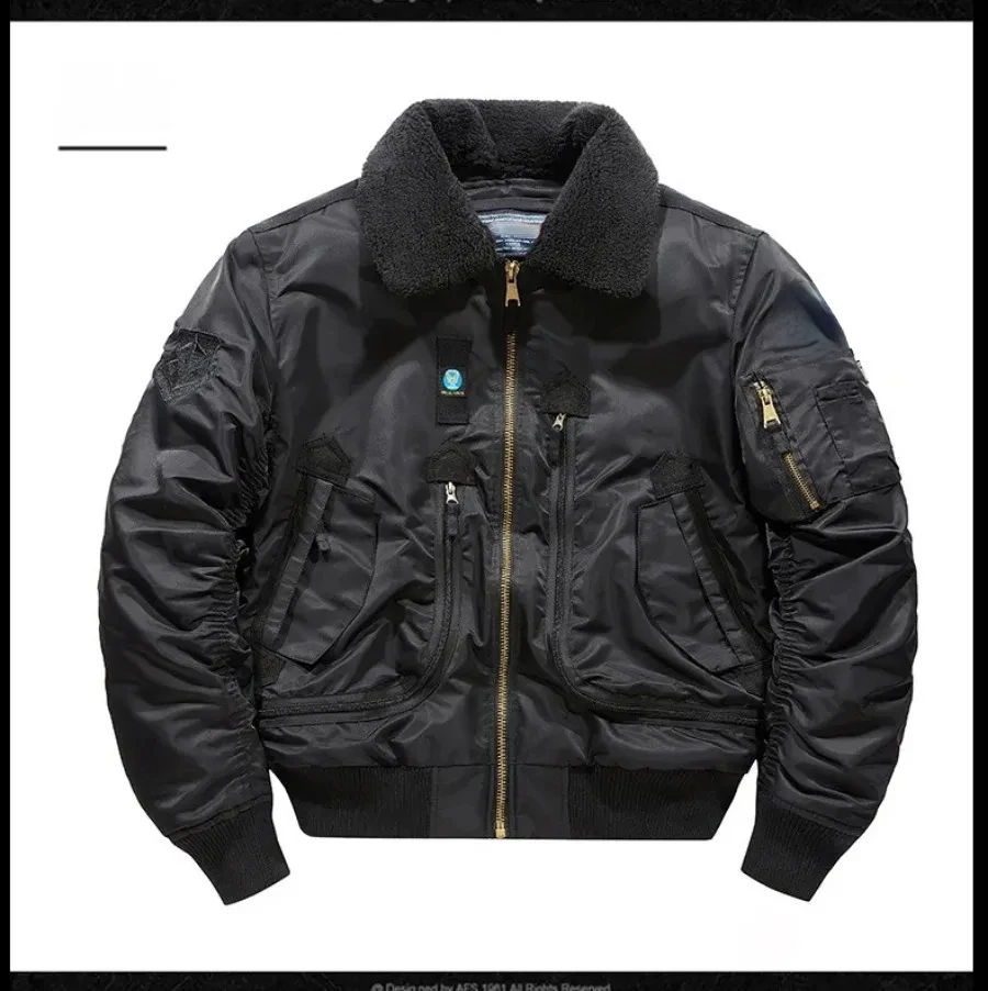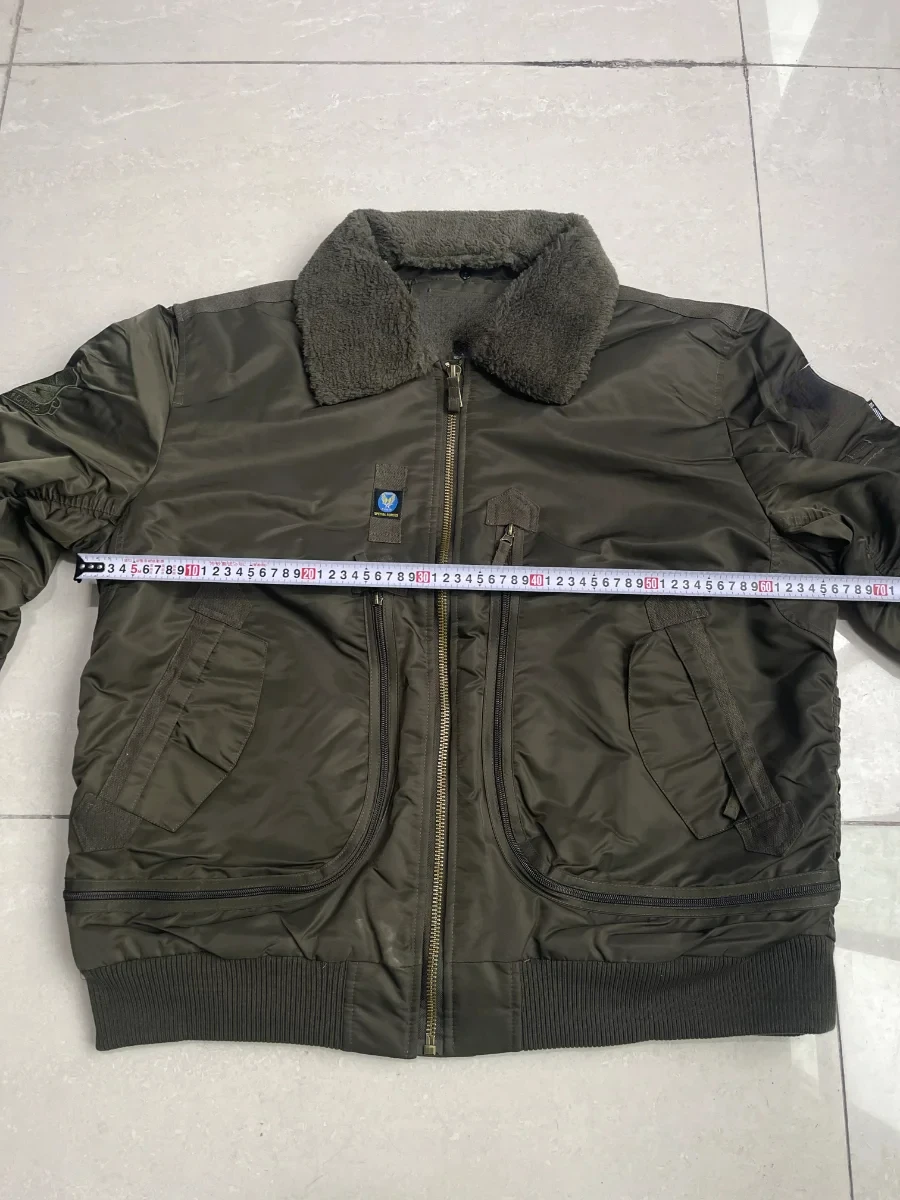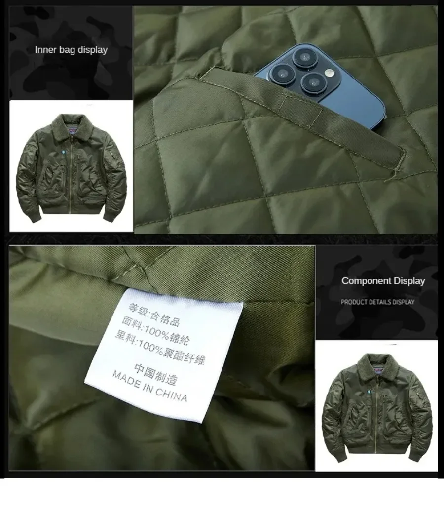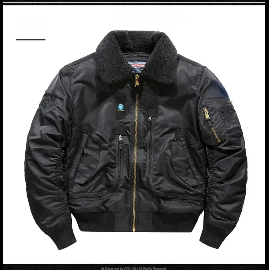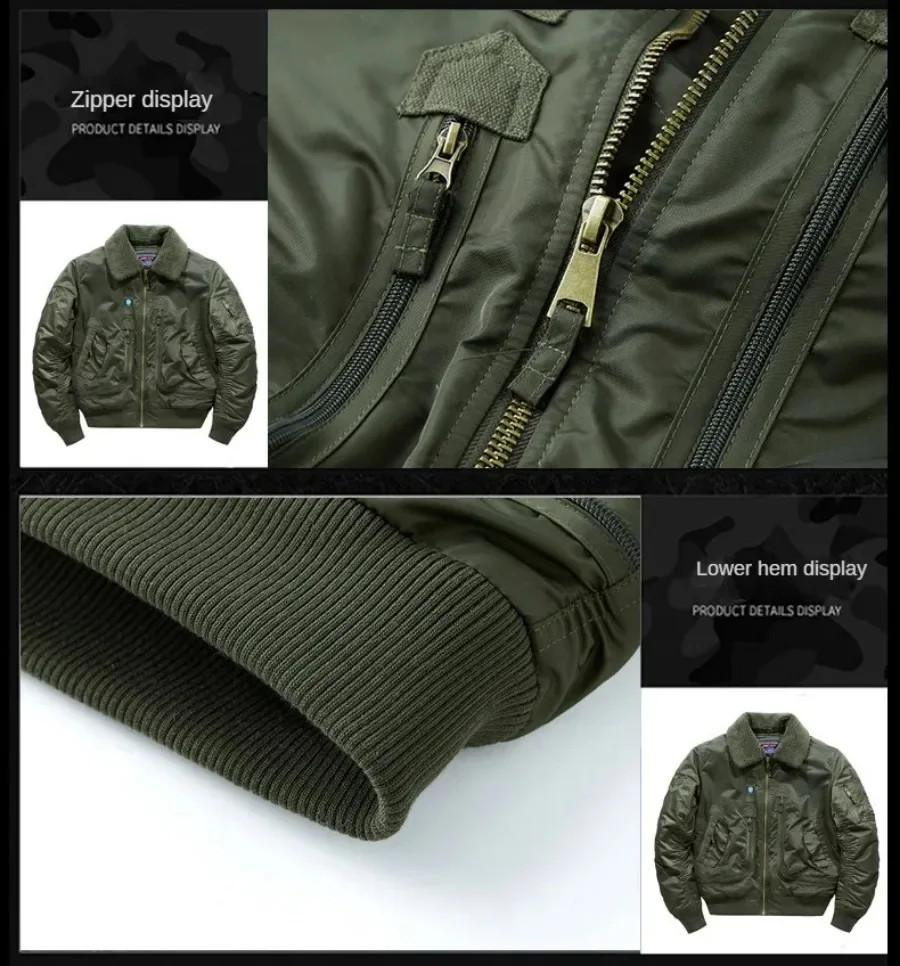 Winter Warm Jacket Mens Functionl Unloading Jacket Large Pocket Pilot MA-1 Green Bomber Jacket Fur Collar Thickened Hunting Coat