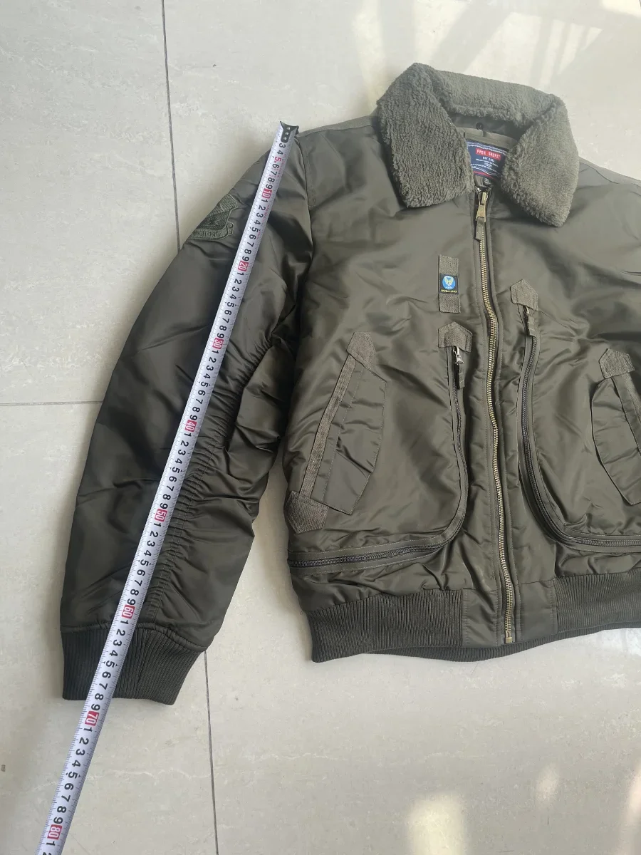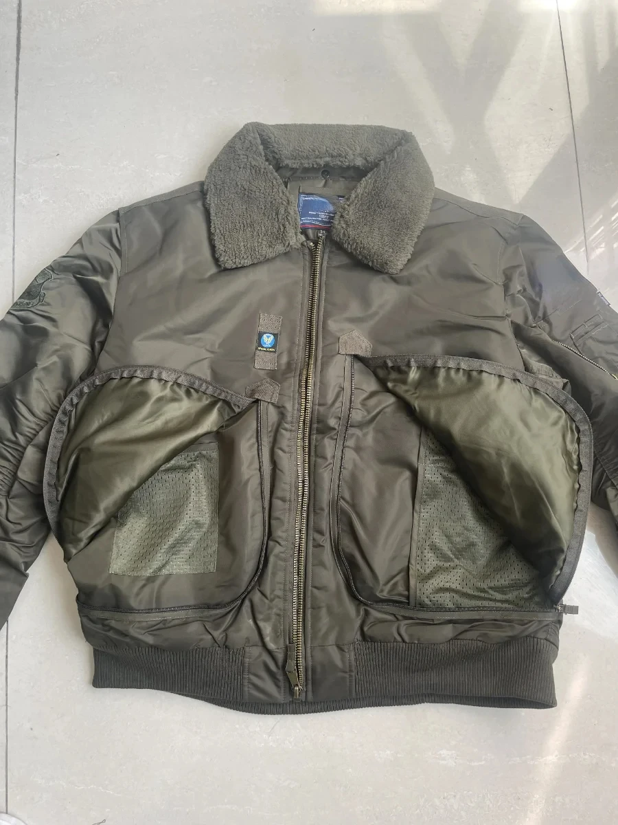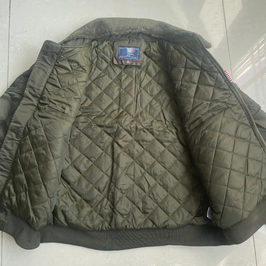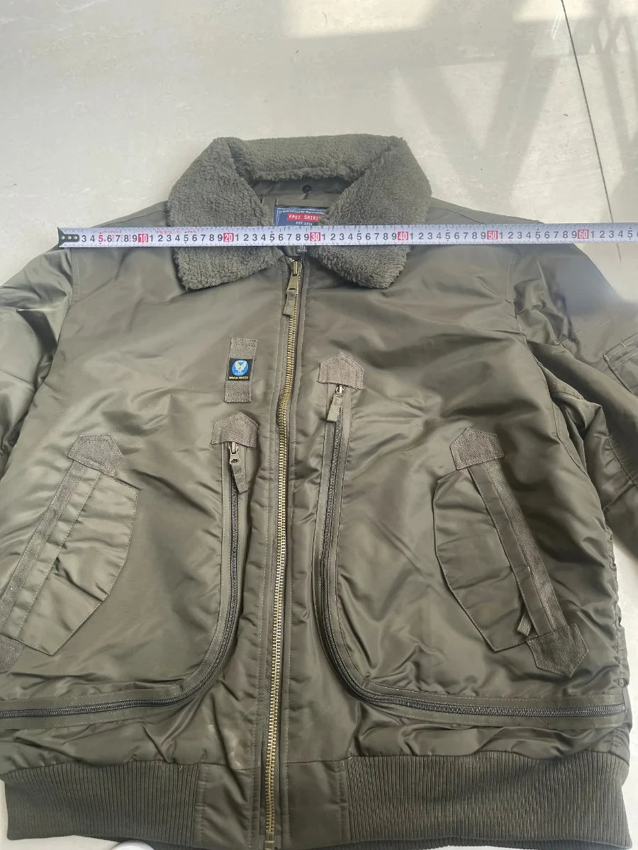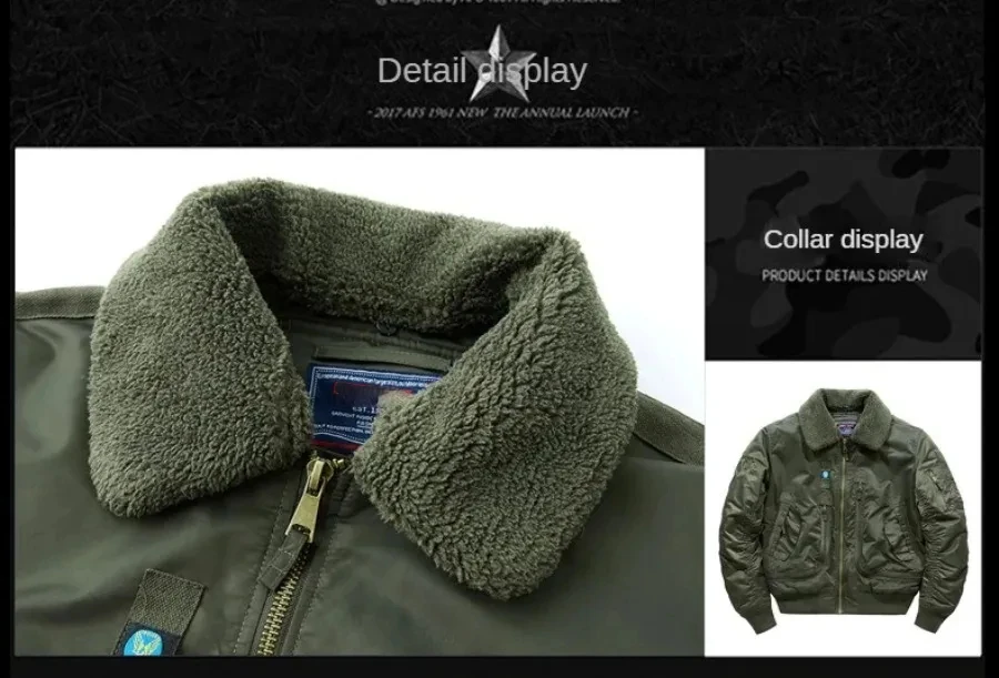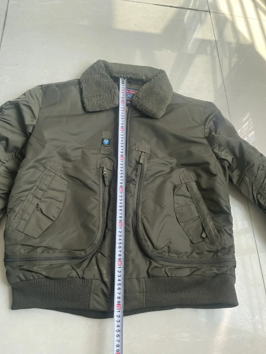 Winter Warm Jacket Mens Functionl Unloading Jacket Large Pocket Pilot MA-1 Green Bomber Jacket Fur Collar Thickened Hunting Coat