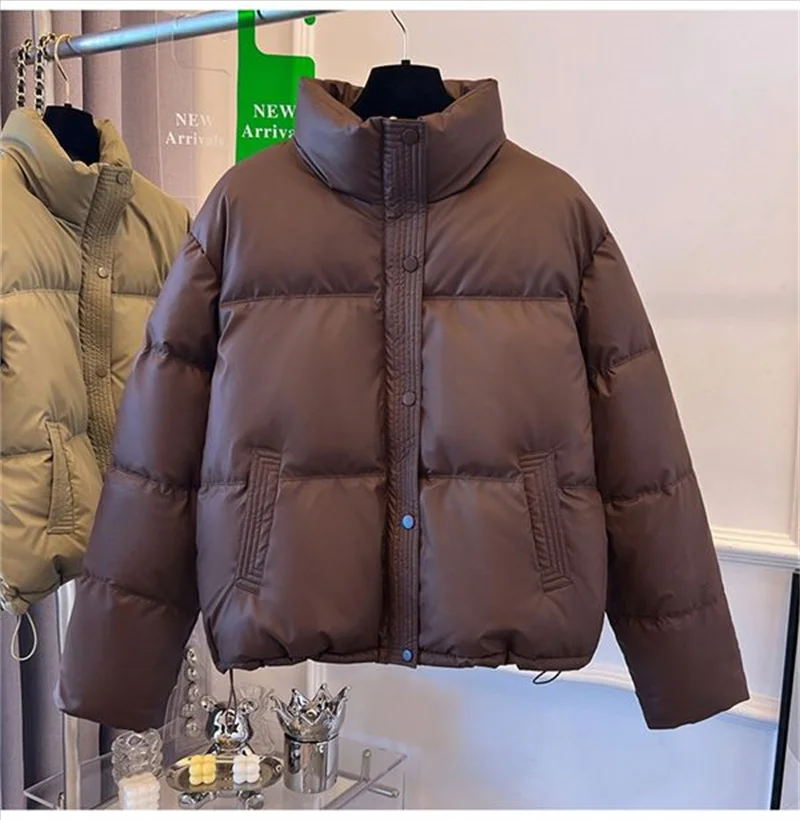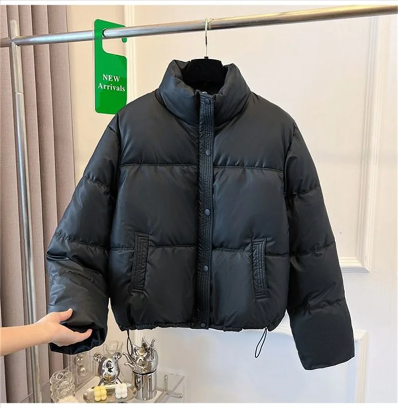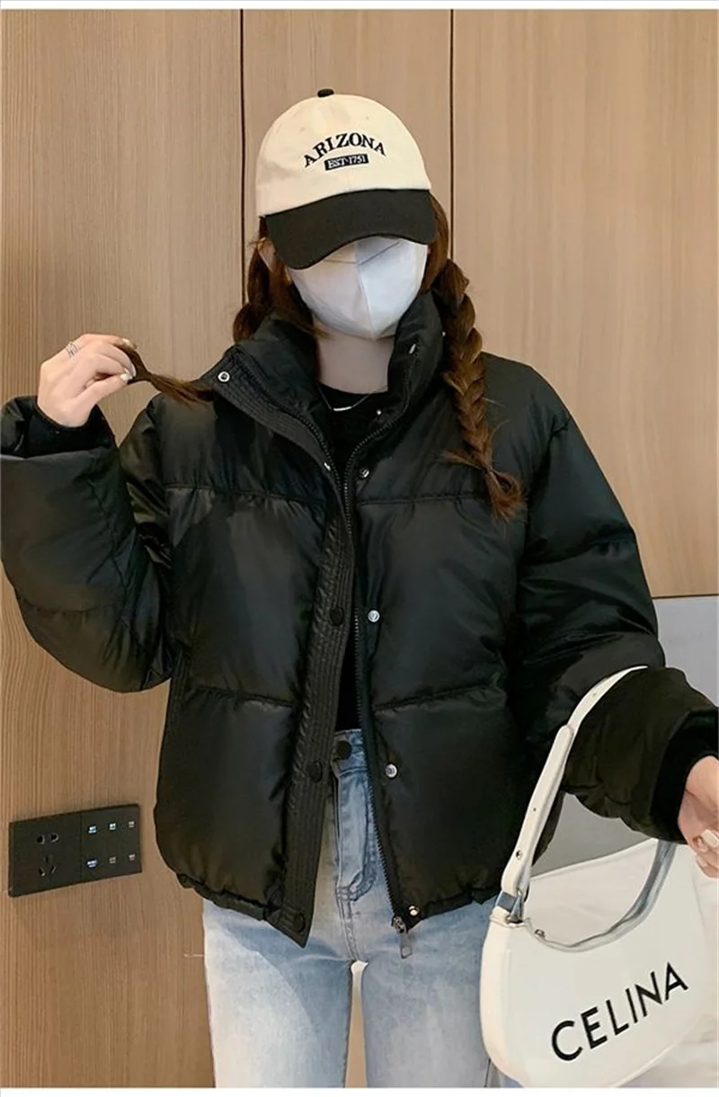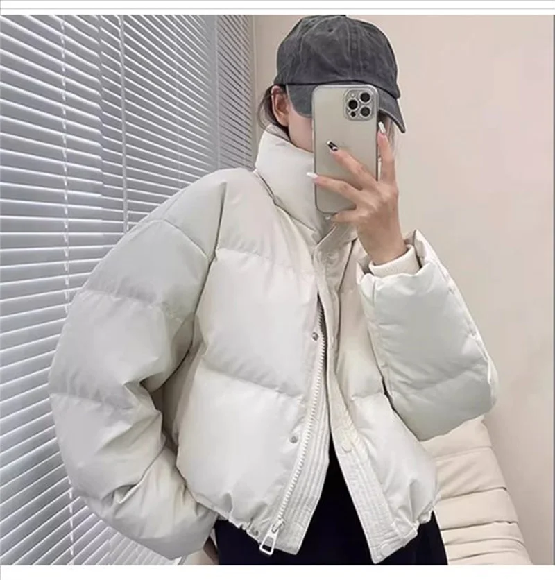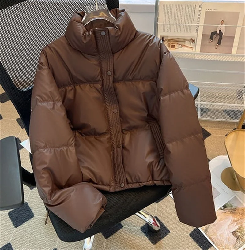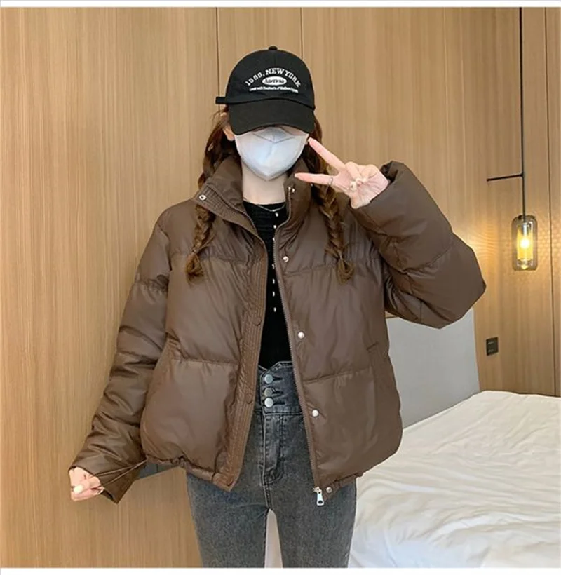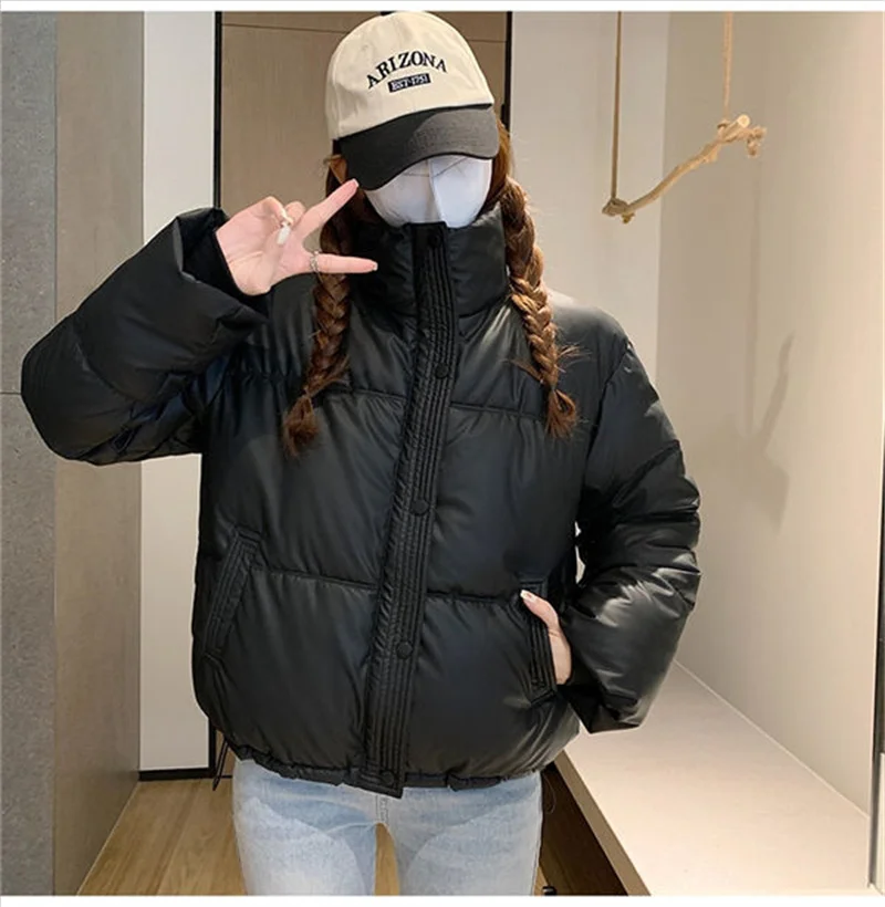 Winter Warm Thick PU Leather Coats Women Short Parkas Fashion Black Cotton Padded Lady Down Jacket Elegant Zipper Clothes 2024