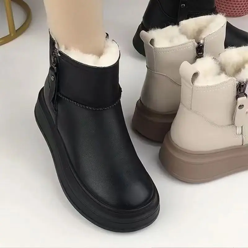 Winter Women Boots Plus Velvet Thickened PU Leather Ankle Boots Outdoor Cold-resistant Warm Cotton Shoes Non-slip Women Boots