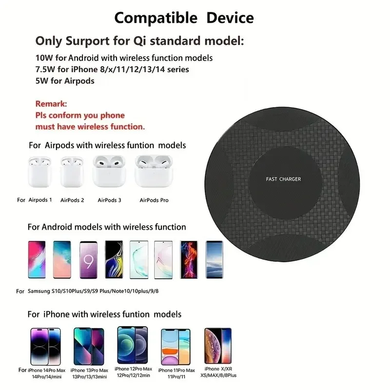 【Extensive Compatibility】Support 10W/7.5W/5W Output.Our wireless chargers will compatible with All phones that support wireless charging. So if your phones support wireless charging,Just buy it!