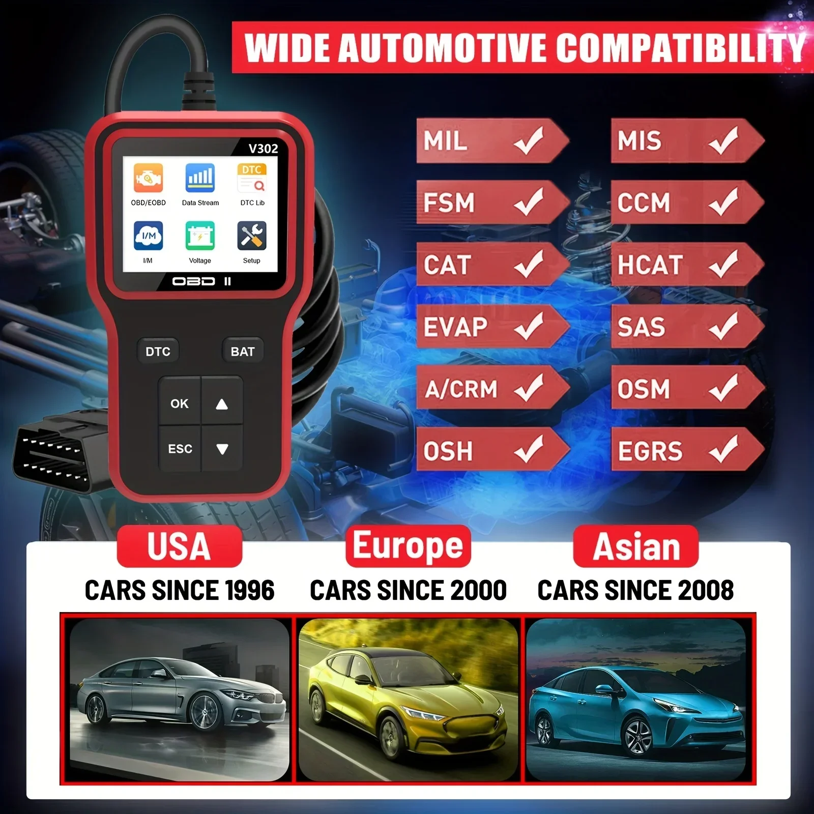 OBD2 Car Diagnostic Tool, Check Engine, Code Reader com Reset,Battery Test,OBDII, EOBD CAN, Car Scan Tools