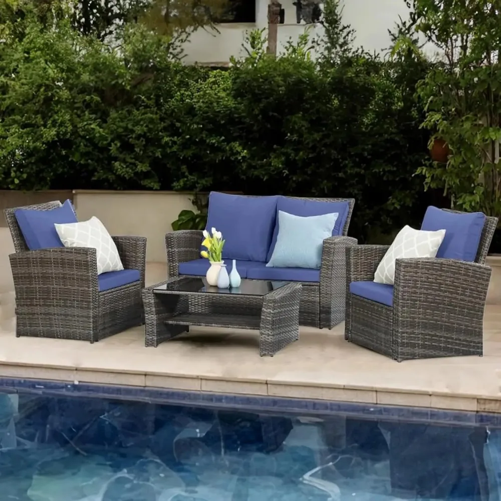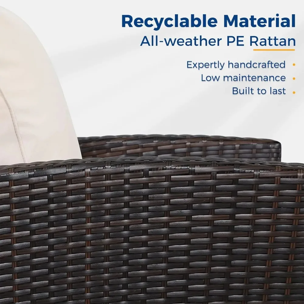 - 【Durable and Long-lasting Outdoor Patio Furniture】Experience the durability and reliability of this 4-piece patio furniture set. Crafted with premium PE rattan and a sturdy powder-coated steel frame, it is built to withstand any weather condition, ensuring years of outdoor enjoyment. Whether you have a balcony, lawn, garden, or poolside, this set is perfect for all outdoor spaces.