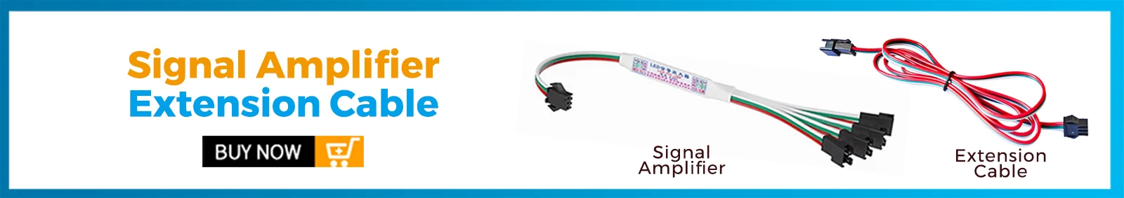 Extension cable will lead to signal reduction, which may caused LED strip to not work properly ( such as lighting blinks, display wrong color, malfunction of head led strip, and other problems).To avoide these problems, please connect a Signal Amplifier before the extension cable. Click following picture to buy the Signal Amplifier and Extension Cable: