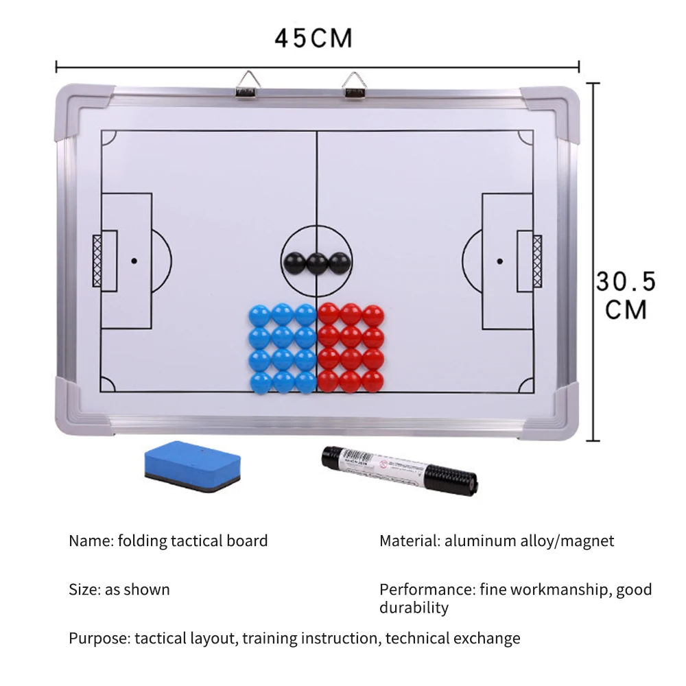 The coaching board is using premium aluminum alloy frame. Trace alignment, exquisite workmanship. 100% simulation of the football court, colorful and intuitive, let you be very smooth and comfortable in discussing tactics. Specifications: