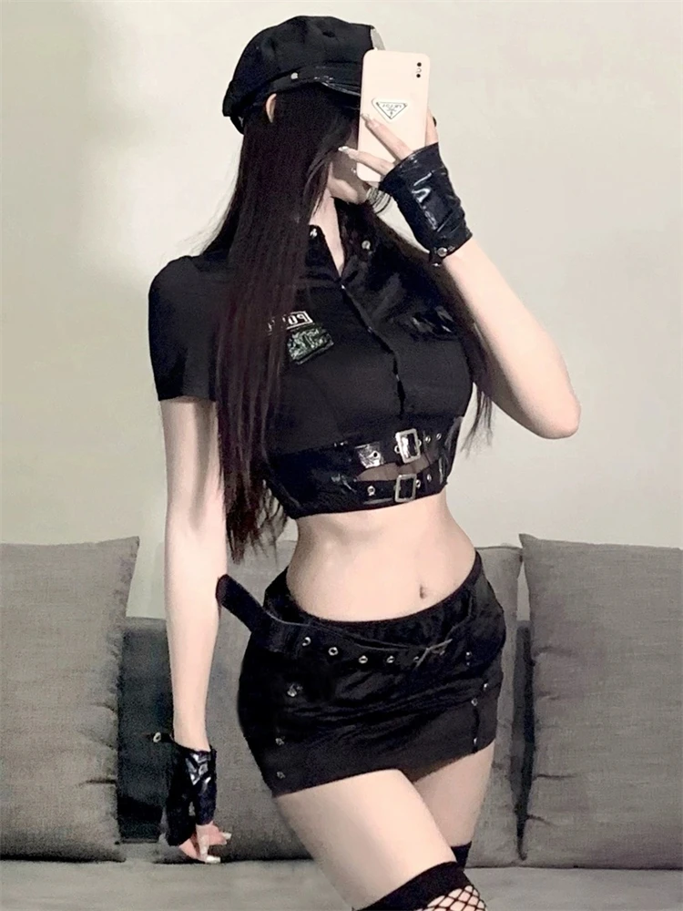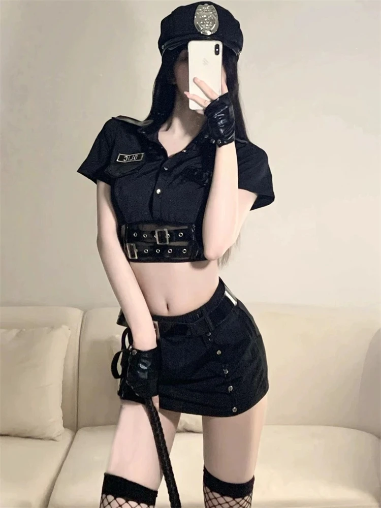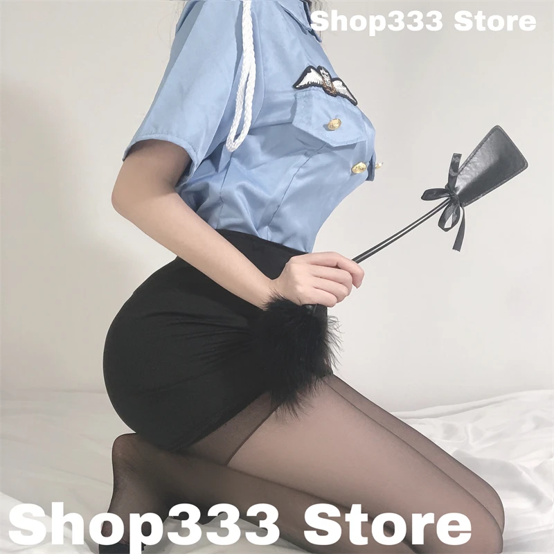 Women Blue Sexy Police Costume Female Cop Officer Uniform Halloween Fancy Party Cosplay Policewoman Stage Performance Outfit Sex