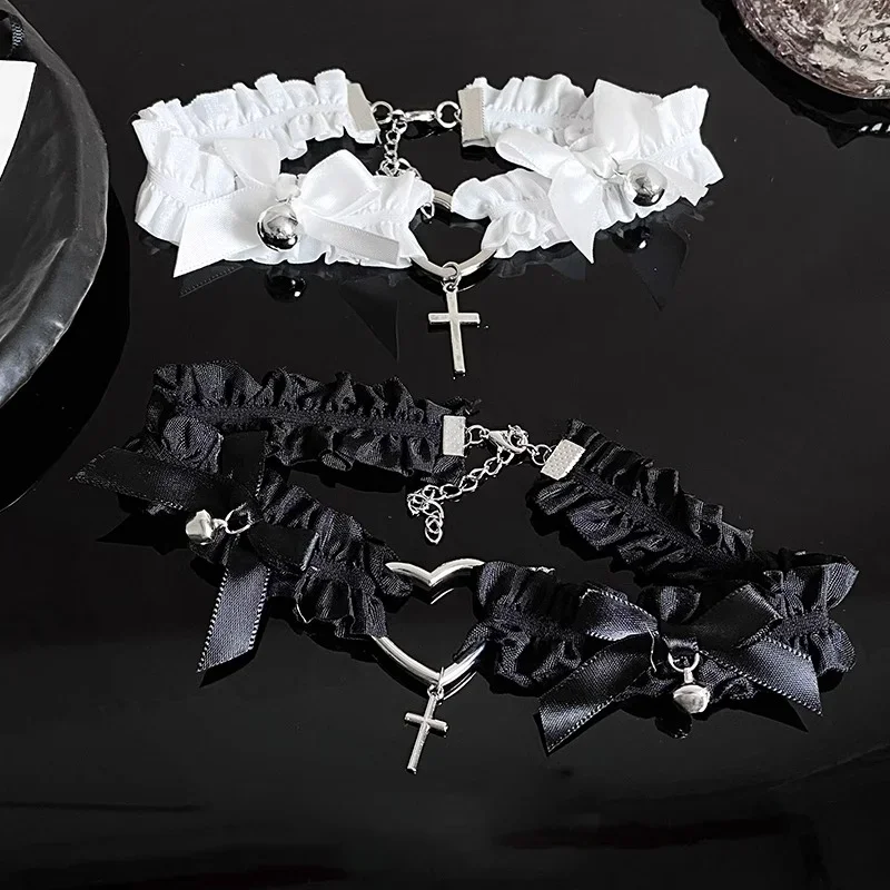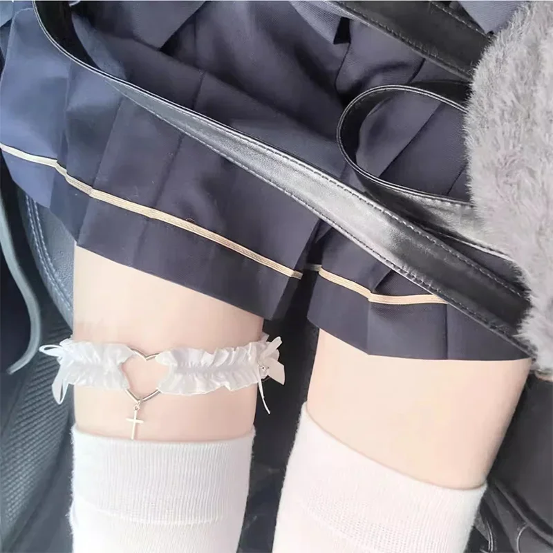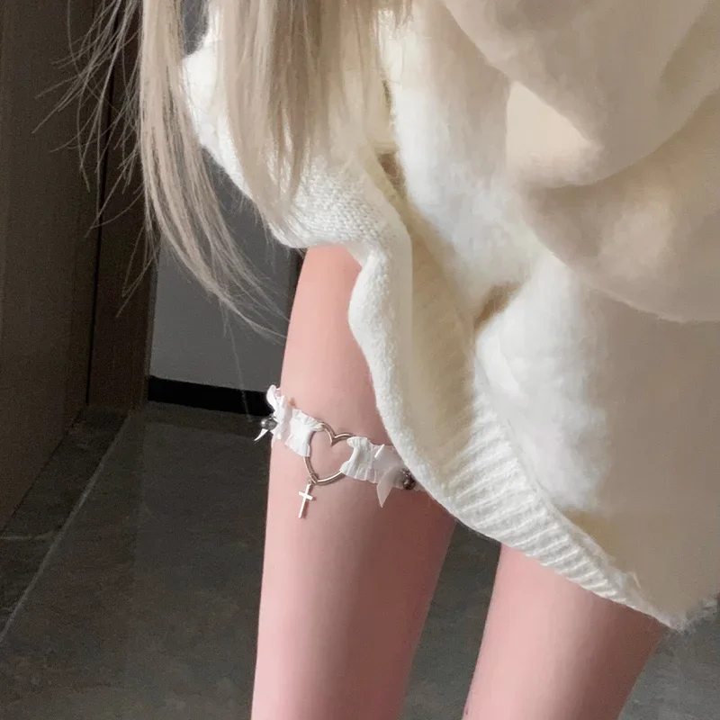 Women Bow Pu Leather Garter Belts Girls Adjustable Punk Lace Garter Belt Love Cross White Black Leg Rings Cosplay Accessories