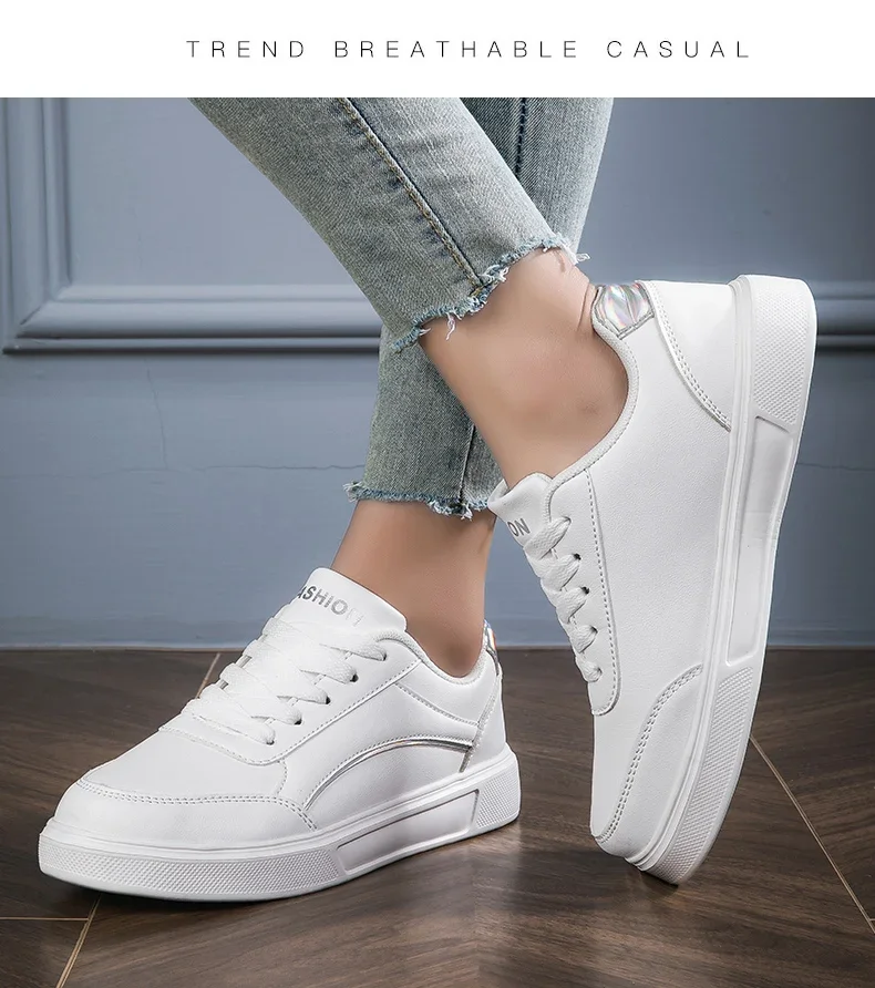 Women Casual Flat Shoes Outdoor Sports Walking Breathable Fashion White Shoes 2024 Comfortable Leather Sneakers Women