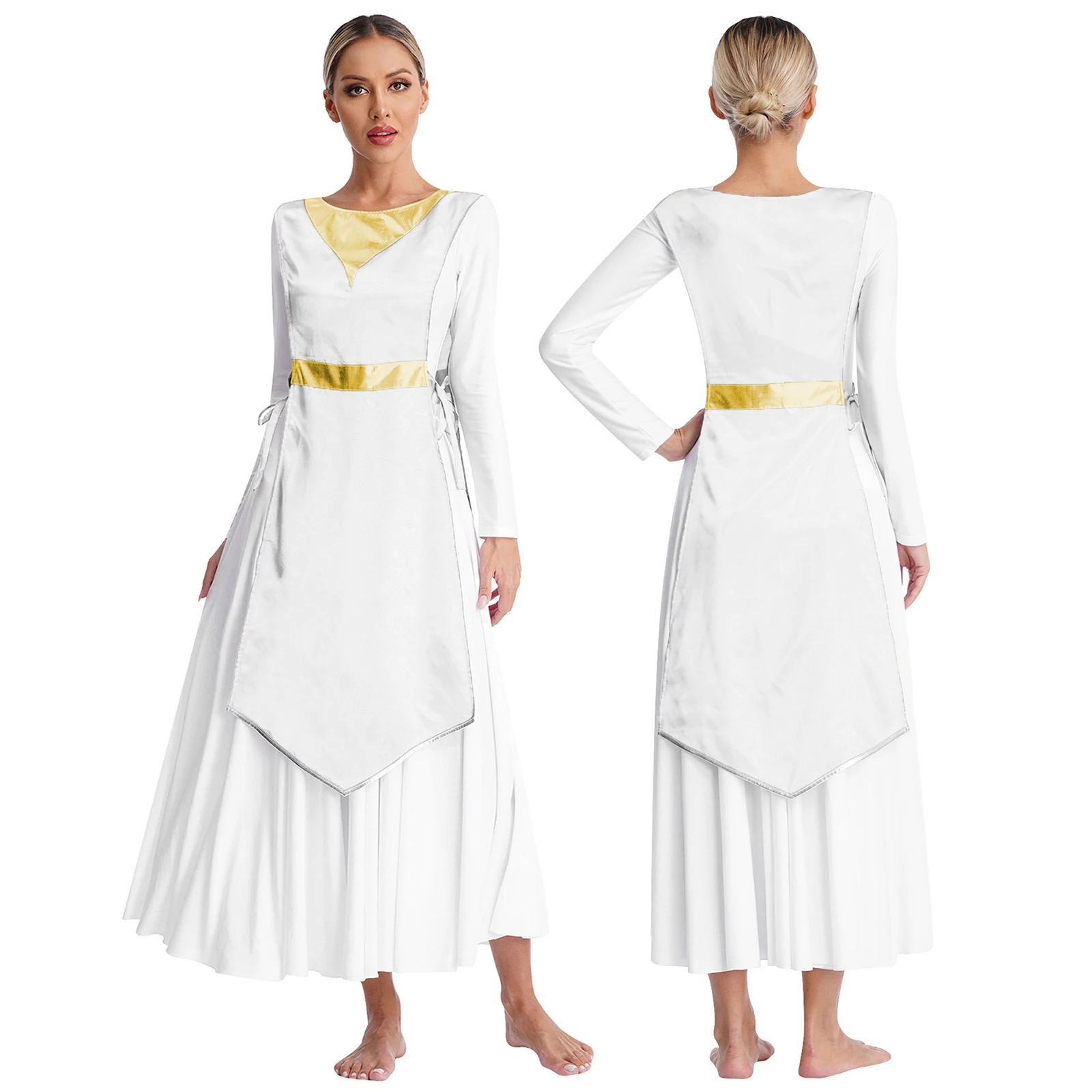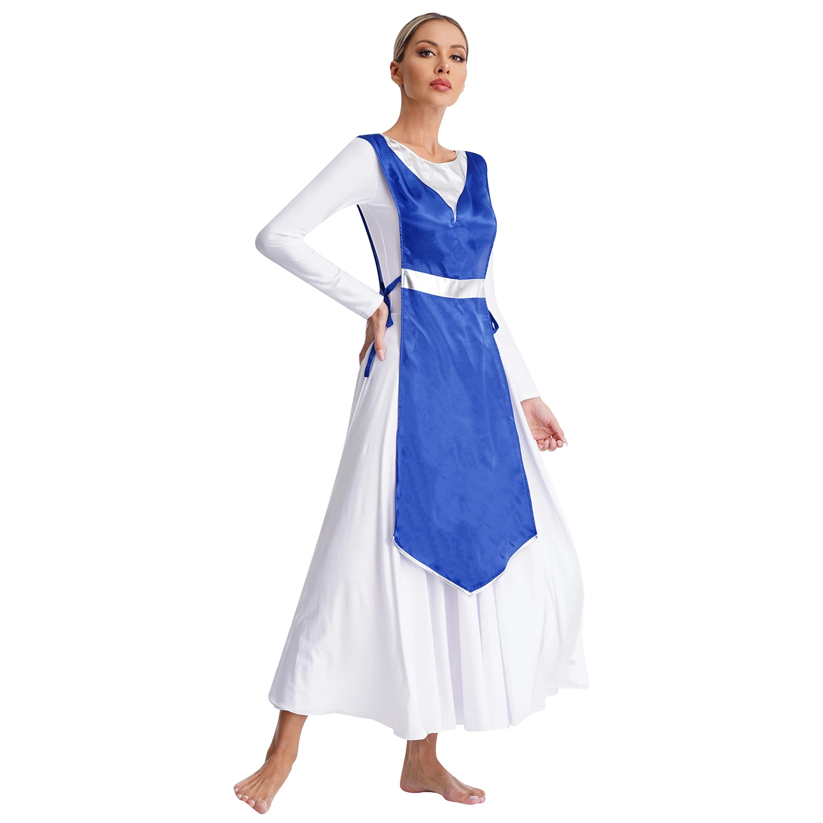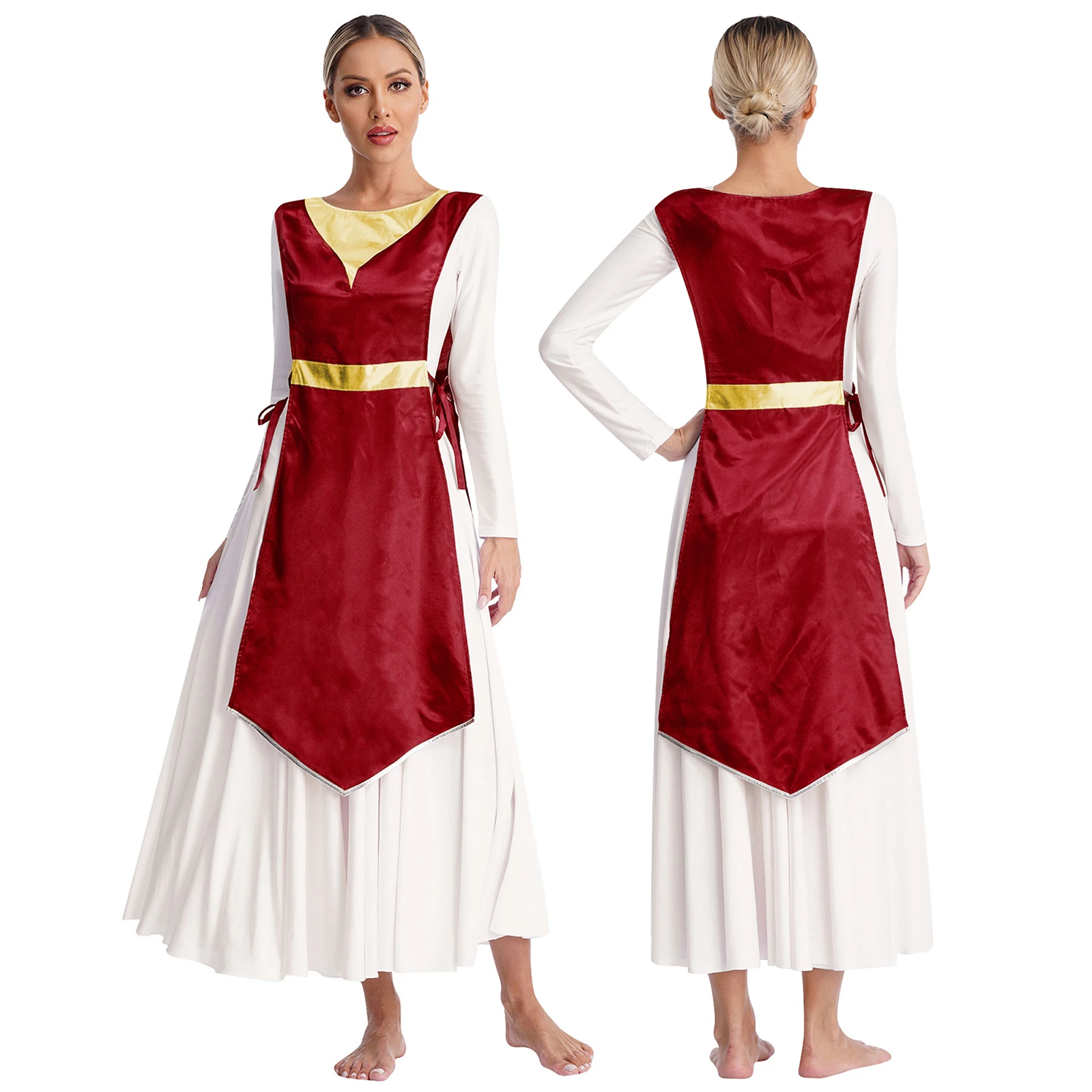 Women Church Choir Worship Dress Liturgical Praise Lyrical Dance Performance Dancewear Sleeveless Lace-up Sides Split Tunic Gown
