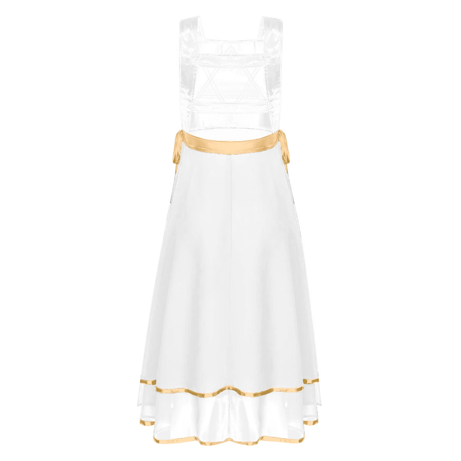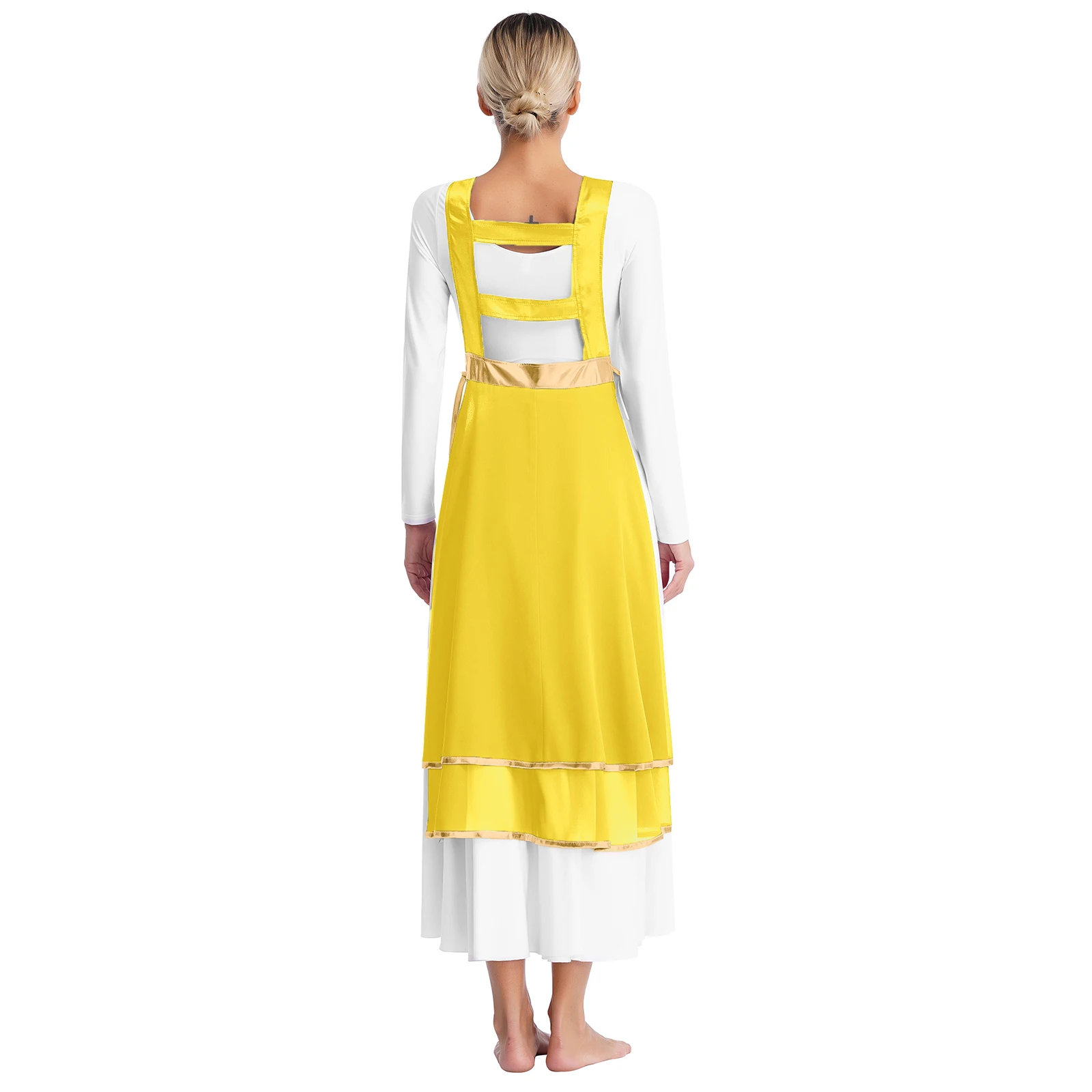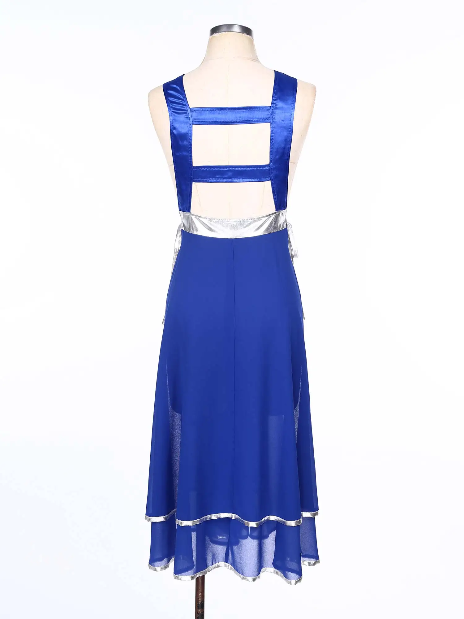 Women Church Choir Worship Dress Liturgical Praise Lyrical Dance Performance Dancewear Sleeveless Lace-up Sides Split Tunic Gown