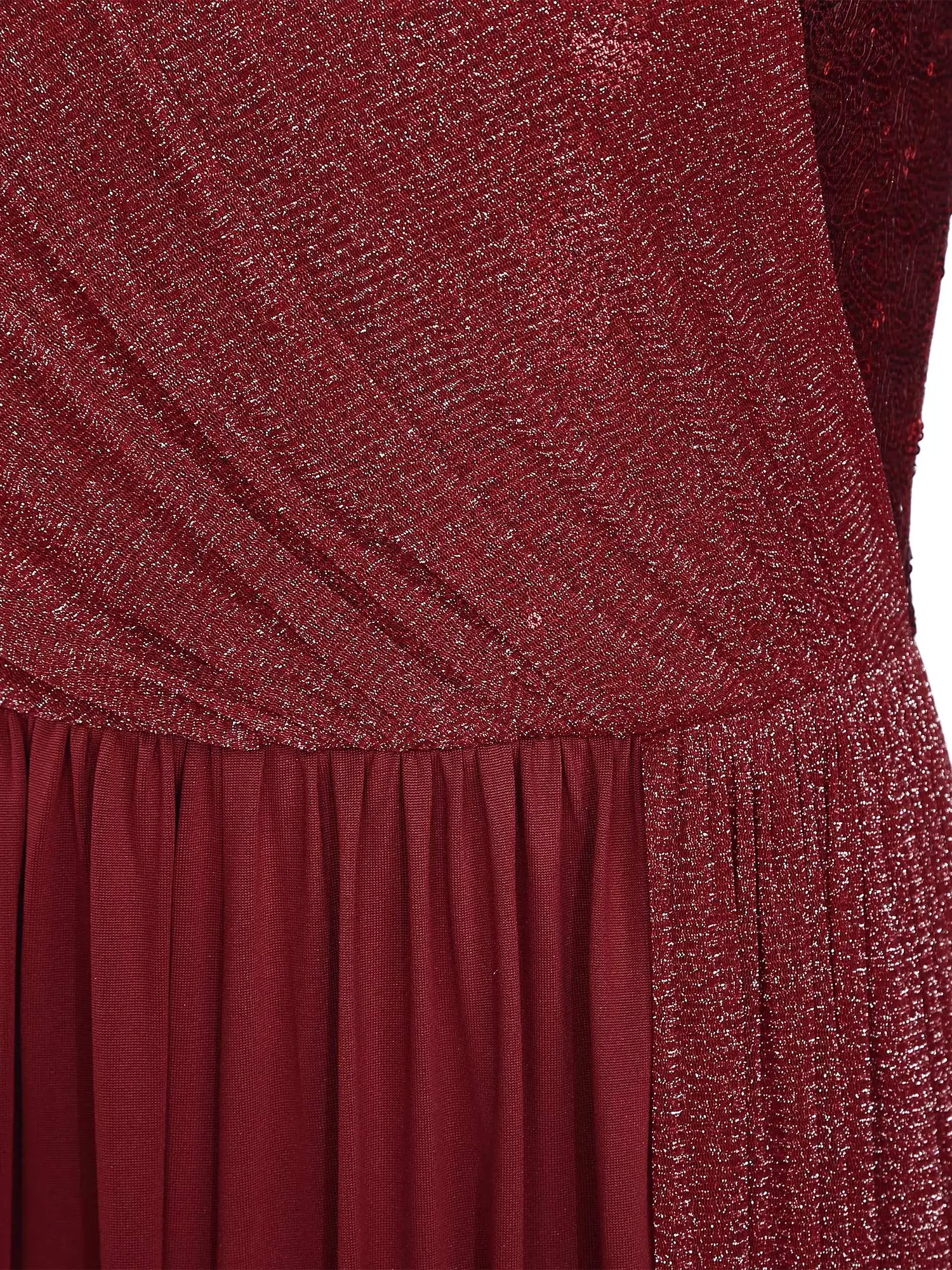 Shimmery overlay at top front and around stretchy waist, creates a vibrant, unique and stunning look.