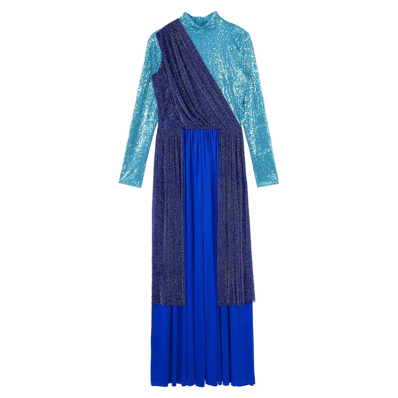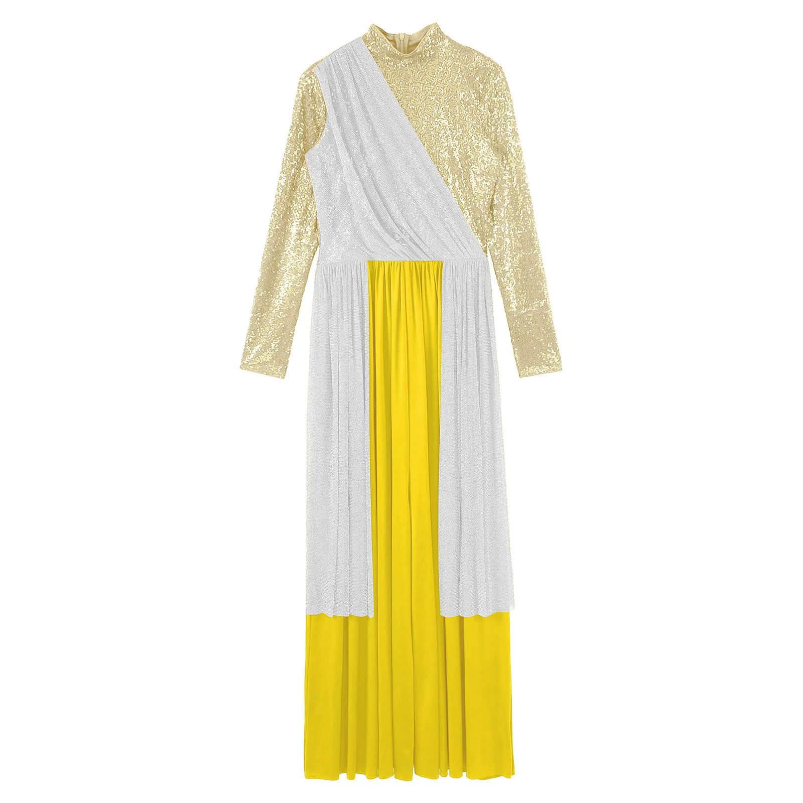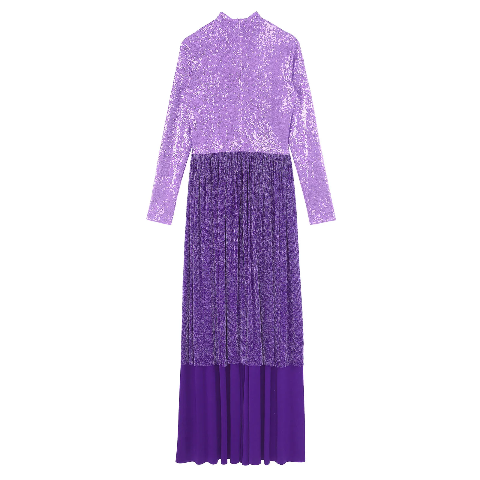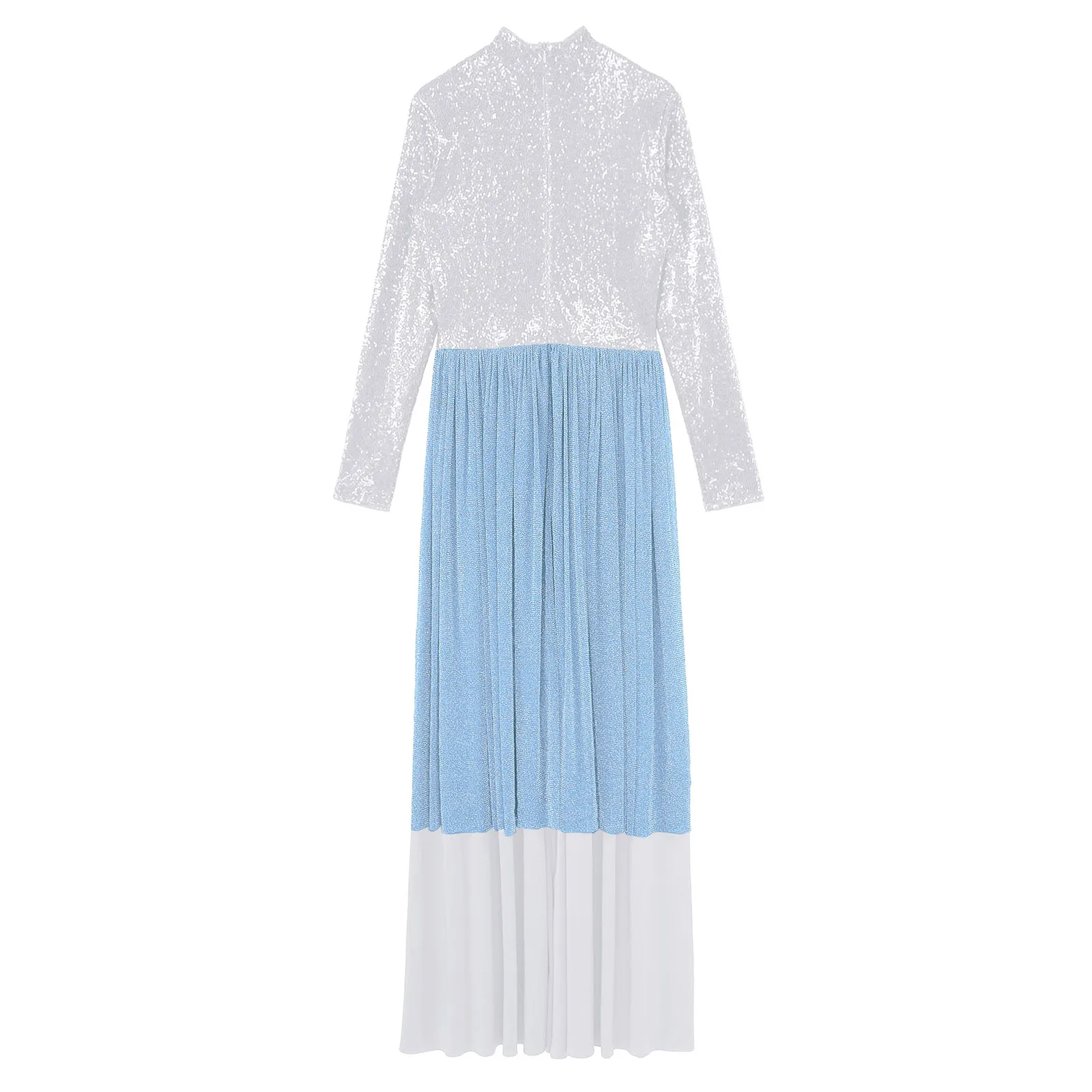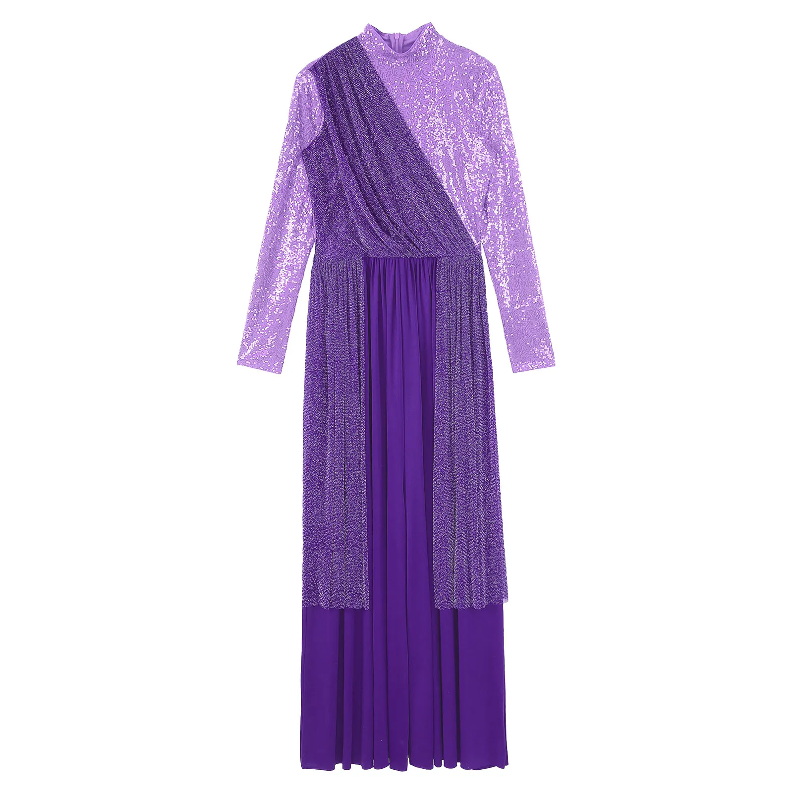 Women Church Choir Worship Liturgical Jumpsuit Praise Modern Lyrical Dance Costume Long Sleeve Sequin Shiny Overlay Catsuit
