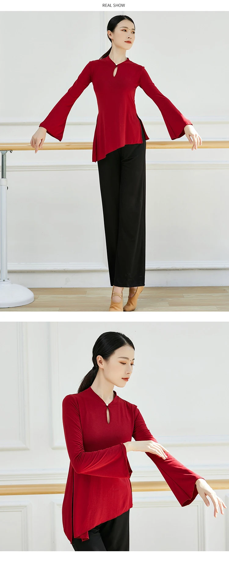 ·Occasions: An elegant & comfy flowy long sleeve shirt for dance practice, body rhyme,chinese folk dance ,stage performance, contempary dance, folk dance, jazz, belly, yoga, special party, daily casual wear etc.