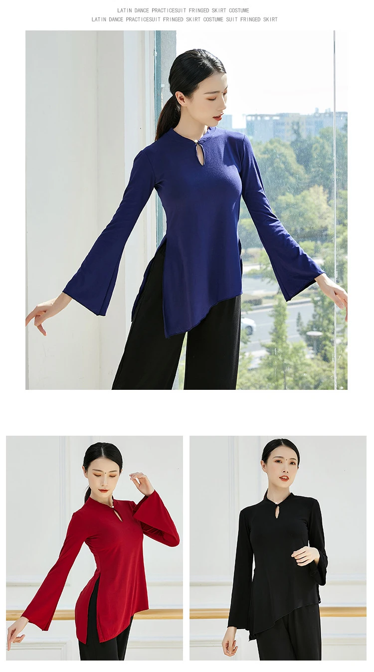 Flared Sleeves Dance Practice Clothes Classical Dance Body Rhyme Top Female Chinese Style Folk Dance Form Wear Blouse