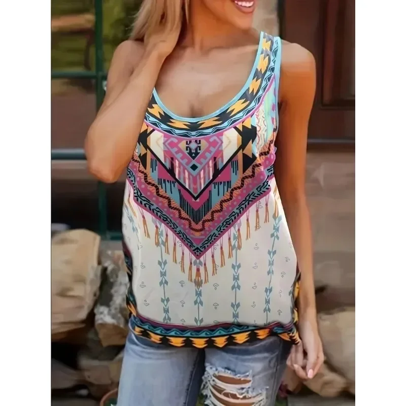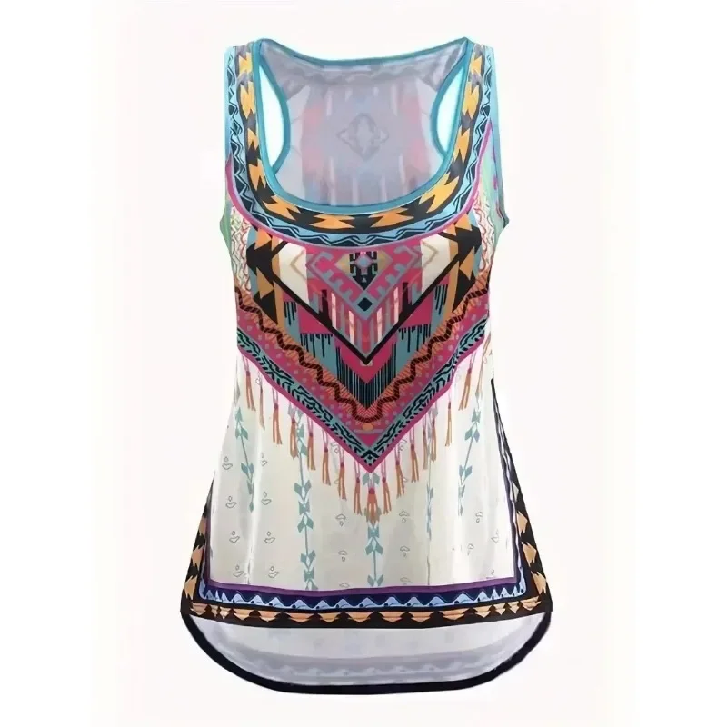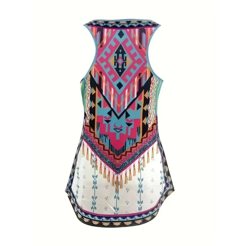 Women Fashion Plus Size 1XL-7XL Women Irregular Sleeveless Digital Printing Vest Ladies Loose Round Neck Printed Tank Tops