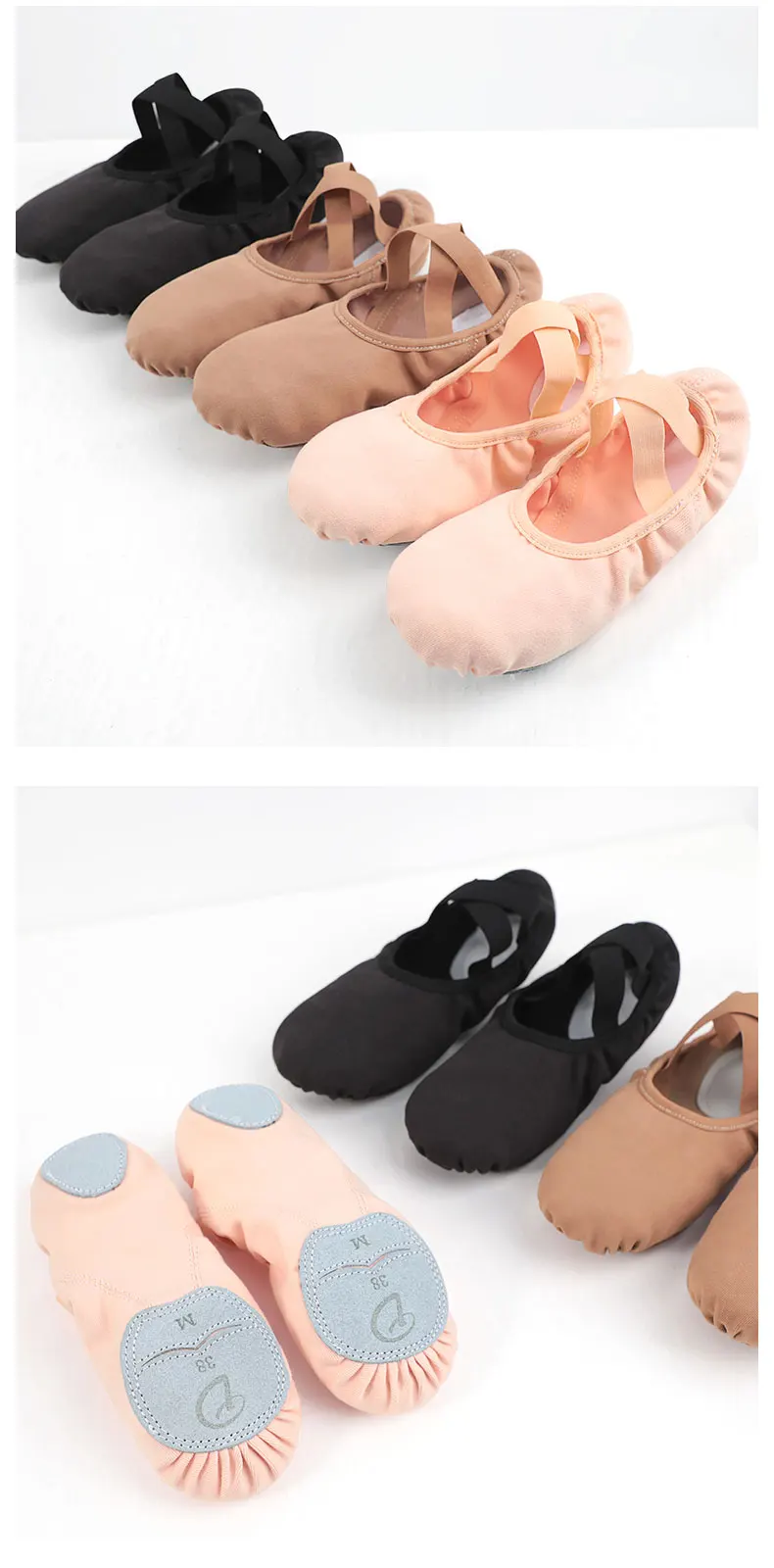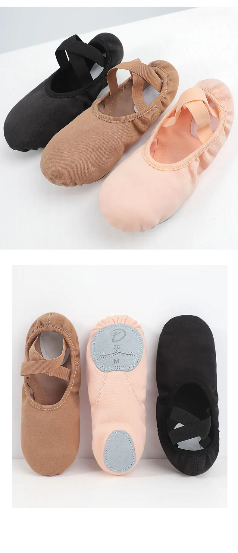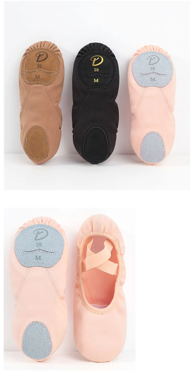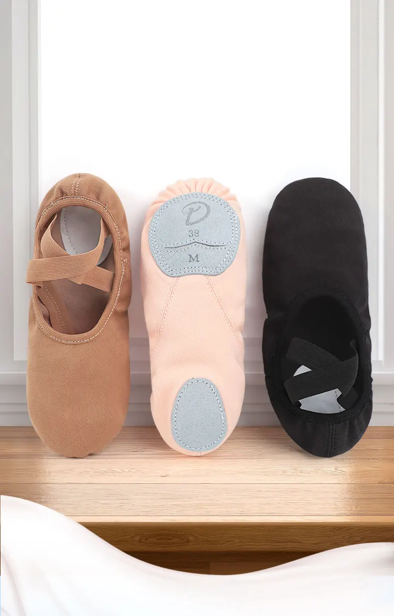 Women Girls Ballet Shoes Ballet Flats Stretch Canvas Split Soft Sole Elastic Fabric Professional Ballet Shoes Dance Slippers