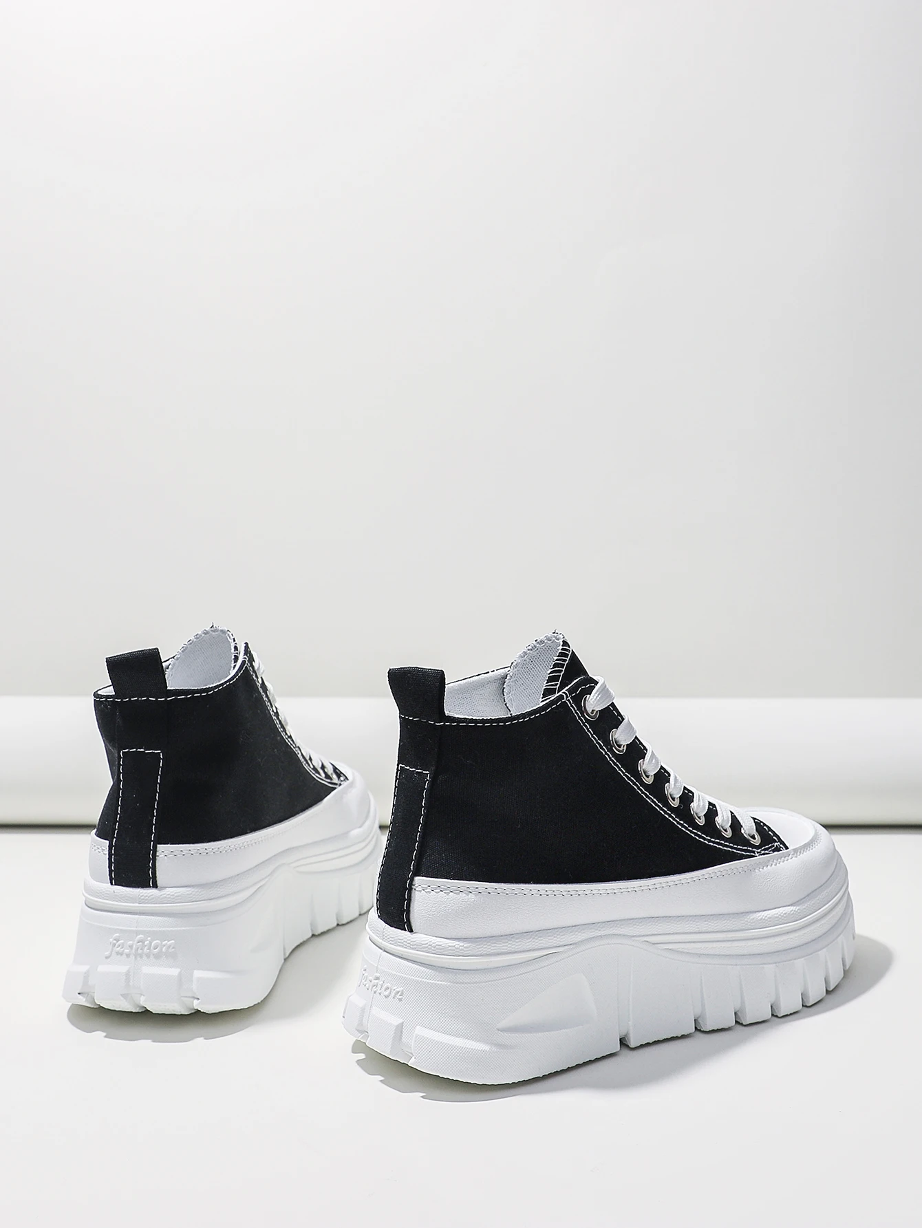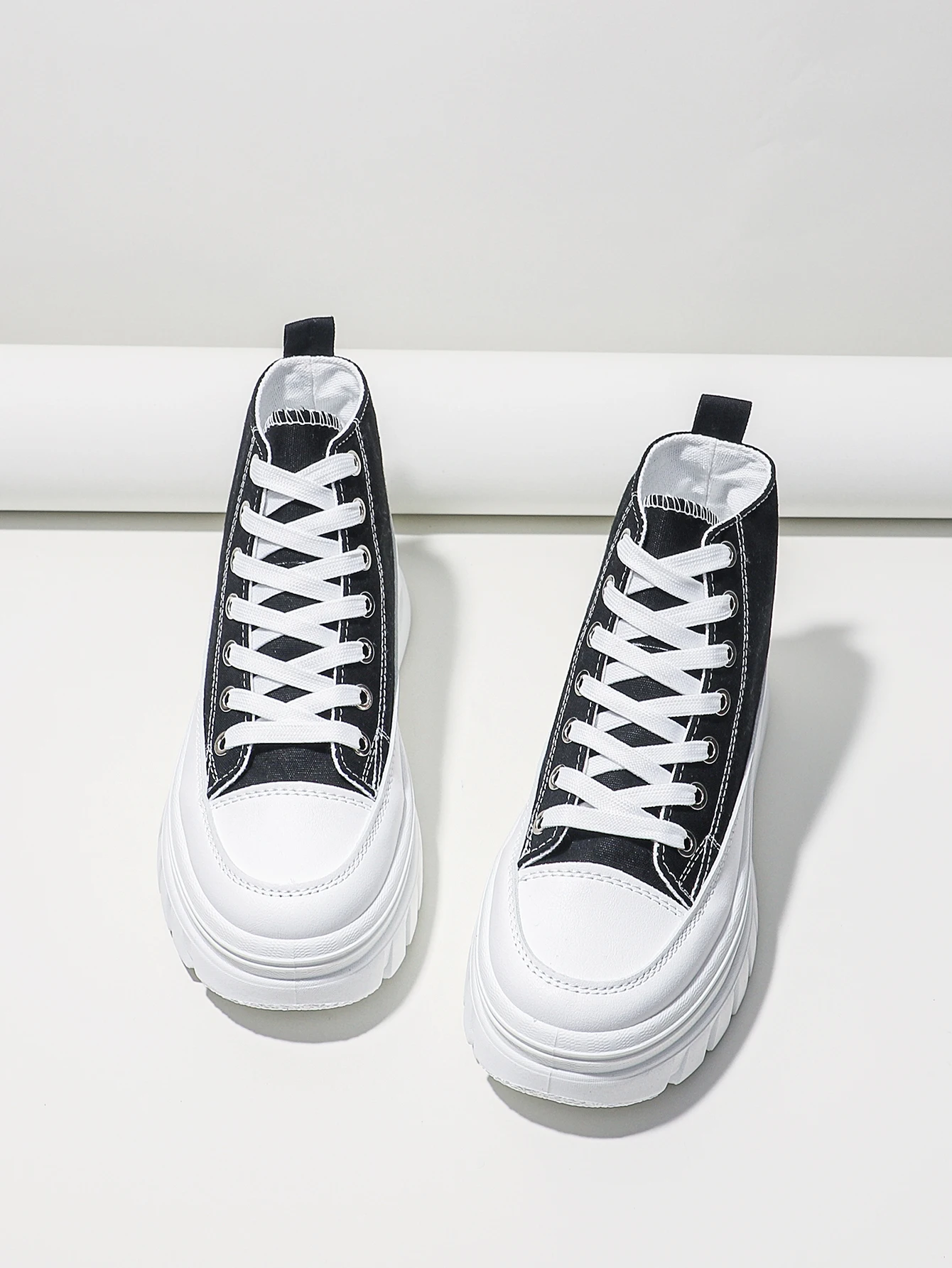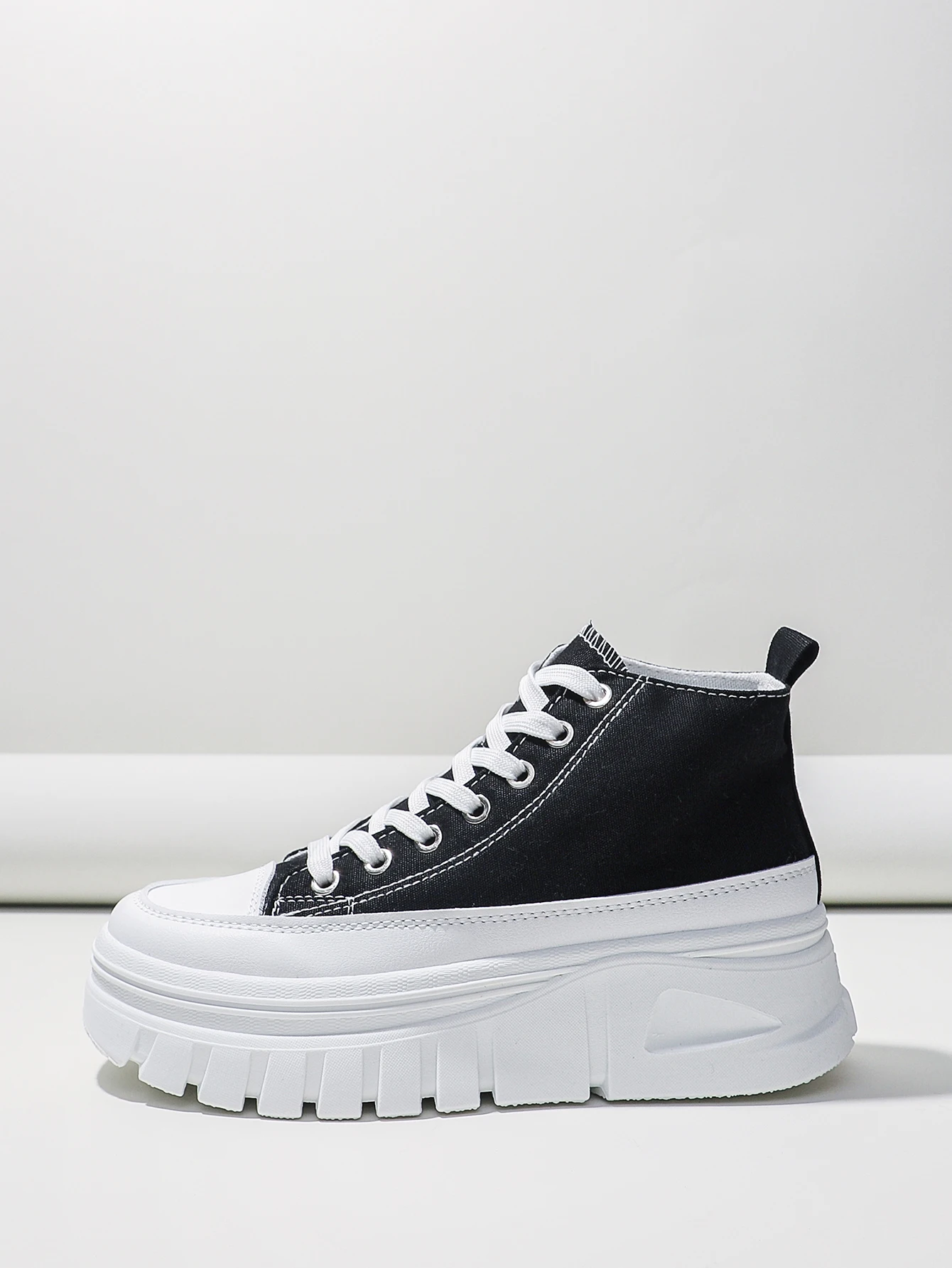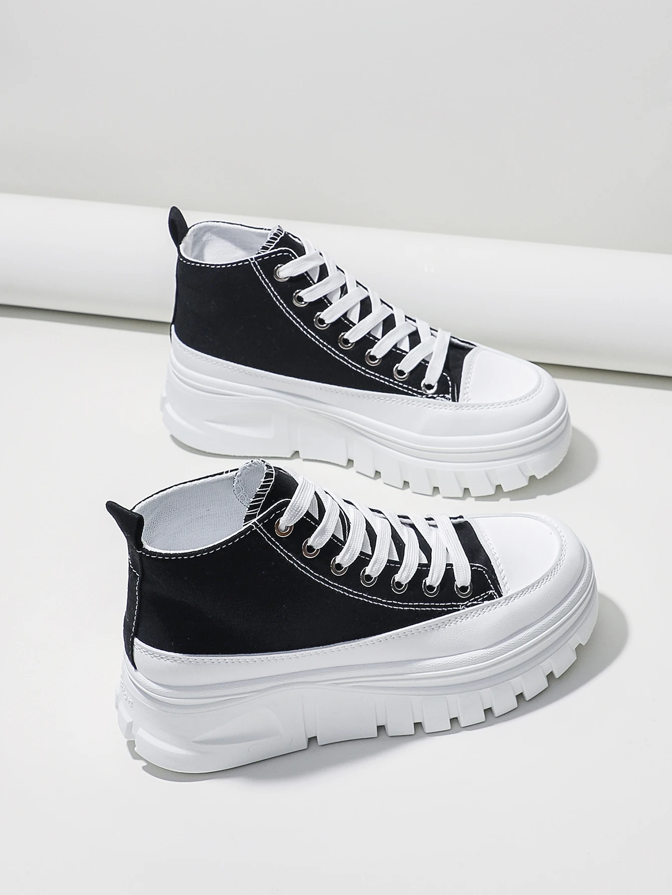Women Lace-Up Front High Top Flatform Canvas Shoes Fashion Casual Comfortable Height Increasing Sneakers
